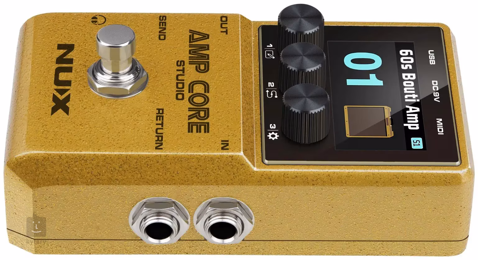 Pedálový amp simulátor NCA-1 Amp Core Studio od společnosti NUX vám v kompaktním pedálovém provedení poskytne celkem 26 modelů těch vůbec nejlepších kytarových aparátů, mezi nimiž nesmí chybět fenderovská komba jako Tweed a Twin, aparáty založené na marshallovském designu Plexi nebo JCM, moderní high-gainové aparáty typu HBE, VH4 nebo Rectifier a také proslulé butikové aparáty jako DC30, Maz 38 a AC30. K vytváření těchto prvotřídních zvuků slouží pokročilá modelingová technologie NUX TSAC-HD, která věrně simuluje zvuk aparátů všeho druhu a umožňuje vám nosit vaše nejoblíbenější zvuky všude s sebou.