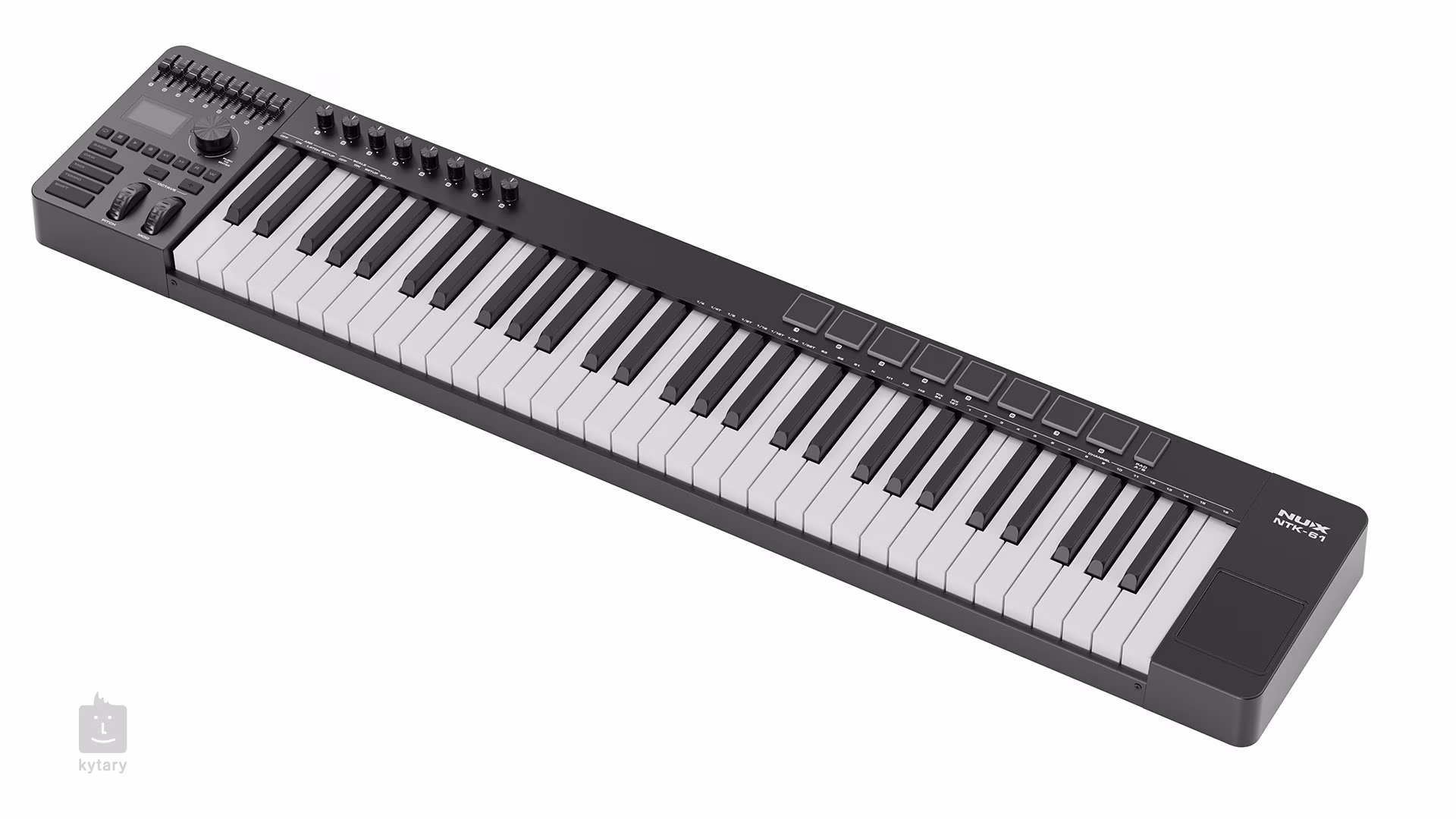 Multifunkční MIDI kontroler NUX NTK-61 je vhodný pro integraci a práci v rámci DAW. Nabízí intuitivní ovládání oblíbených SW jako jsou Cubase, Logic Pro a Pro Tools, prostřednictvím protokolů Mackie, Hui a CC, přičemž poskytuje základní funkce pro mixování ve spojení s 9 fadery, transportními tlačítky, 8 encodery, 8 drum pady a možností ovládání pluginů.
