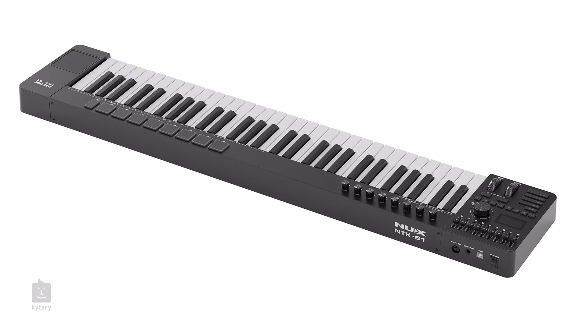 NTK-61 nabízí rychlé připojení přes USB, které usnadňuje ovládání jakékoli hudební sestavy. Jeho dynamicky citlivé klávesy s funkcí aftertouch umožňují výběr ze tří různých dynamických křivek, což vám pomůže zvolit ideální odezvu pro váš styl. Funkce Smart Scale a Arpeggiator lze použít i k ovládání hardwarových sestav. Nechybí ani transpoziční funkce a možnost přepínání oktáv. 8 encoderů a 8 drum padů můžete využít k libovolné produkci a ovládání.