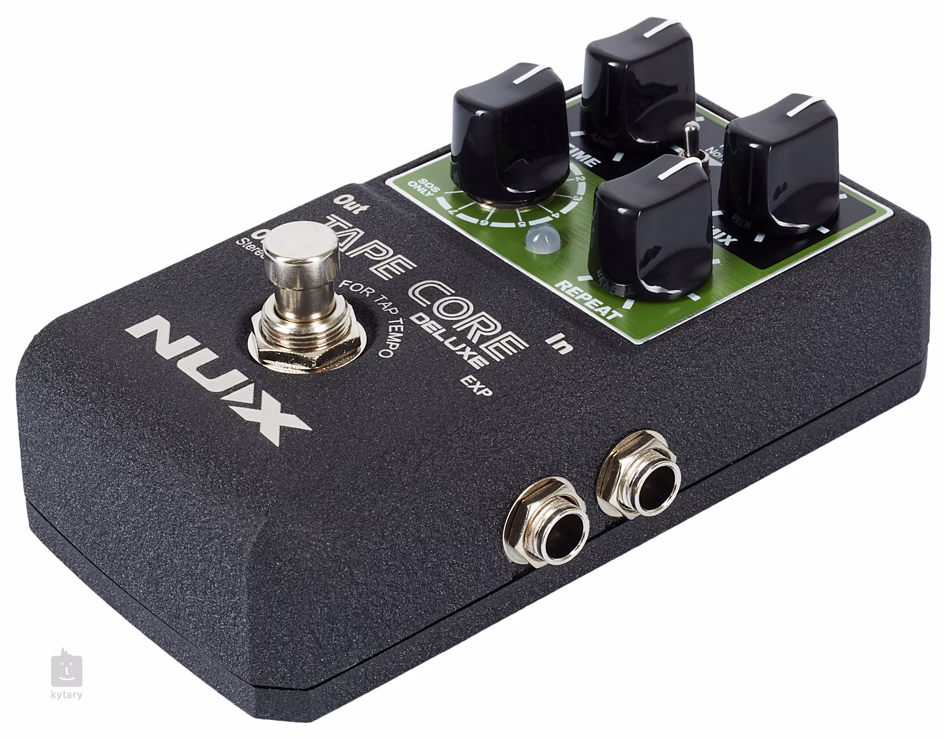 Tape Core Deluxe je digitální delay značky NUX z řady Core Series, který nabízí klasické zvuky páskového echa. Můžete volit ze sedmi režimů/podob páskového echa a upravovat charakter delay efektu pomocí ovladačů určujících délku efektu delay, hlasitost delay efektu a počet opakování (výrobce uvádí maximální delay time 1500 ms). Třípolohovým přepínačem určíte, jestli bude delay efekt doznívat i po vypnutí efektu (Buffered Tail), nebo bude okamžitě ukončen (Normal – True Bypass). V prostřední poloze (T.Lock) krabička „zmrazí“ současné nastavení.