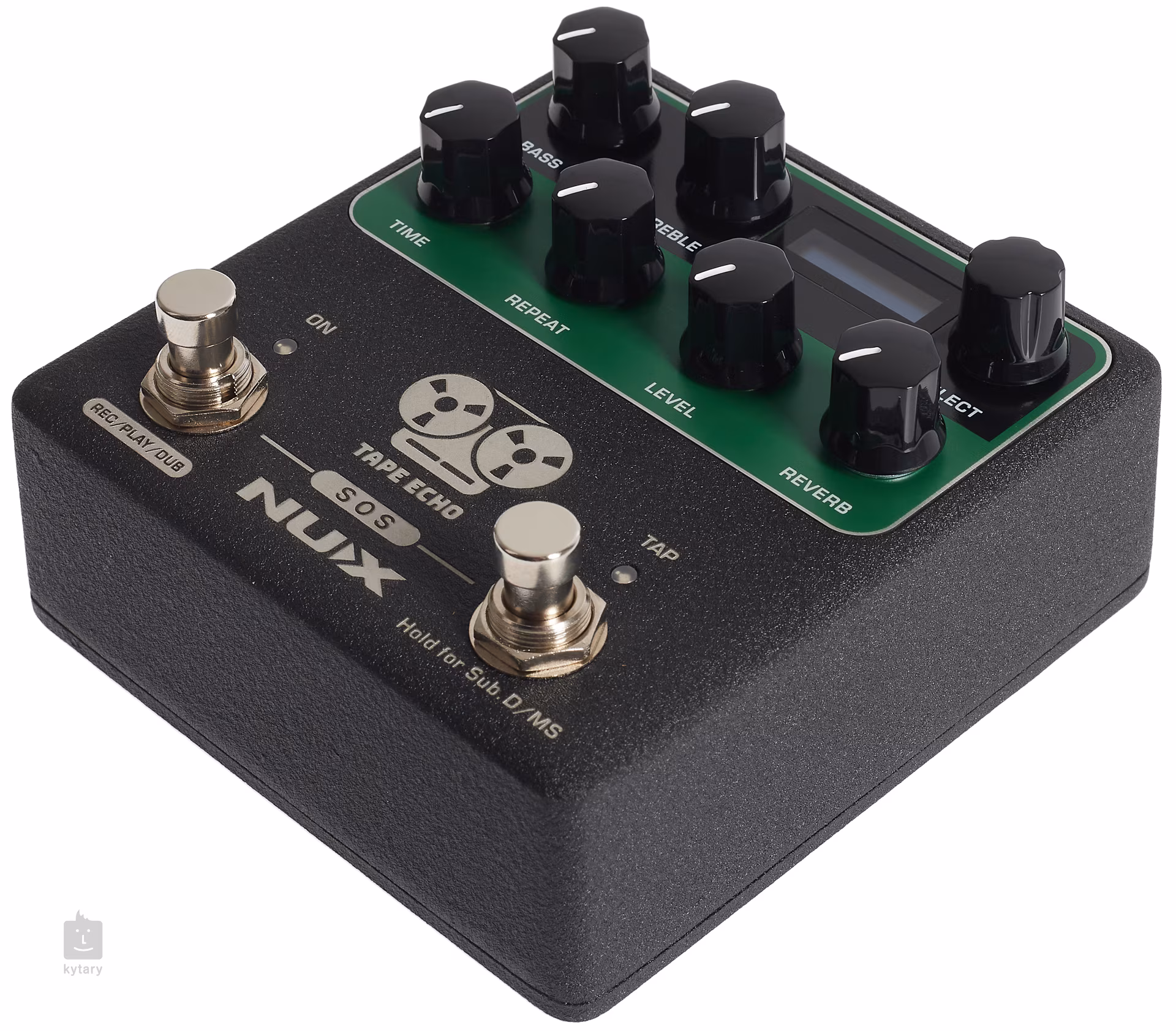 TAPE ECHO NDD-7 je stereo delay pedál značky NUX z řady Verdugo Series, který potěší fanoušky zvukově komplexnějších pedálových efektů. V základu se jedná o poctu starému japonskému páskovému echu Space Echo z roku 1974. TAPE ECHO NDD-7 nabízí kombinaci sedmi virtuálních páskových hlav a reverbu (pružinového), které zní díky technologii Core-Image realisticky. Ovladače povětšinou určují podobu páskového echa (basy, výšky, délku trvání - s funkcí tap tempo až 1600 ms, počet opakování, intenzitu), ovladačem Select volíte mezi kombinacemi virtuálních páskových hlav, stlačením se dostanete k sekundárním funkcím (Saturation, Wow, Flutter, Kill Dry, Expression). Krabička tak nezapomíná i na simulace opotřebení pásky a jiné drobné imperfekce, které k páskovým echům patří.