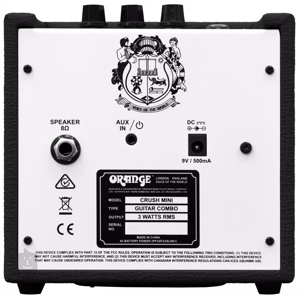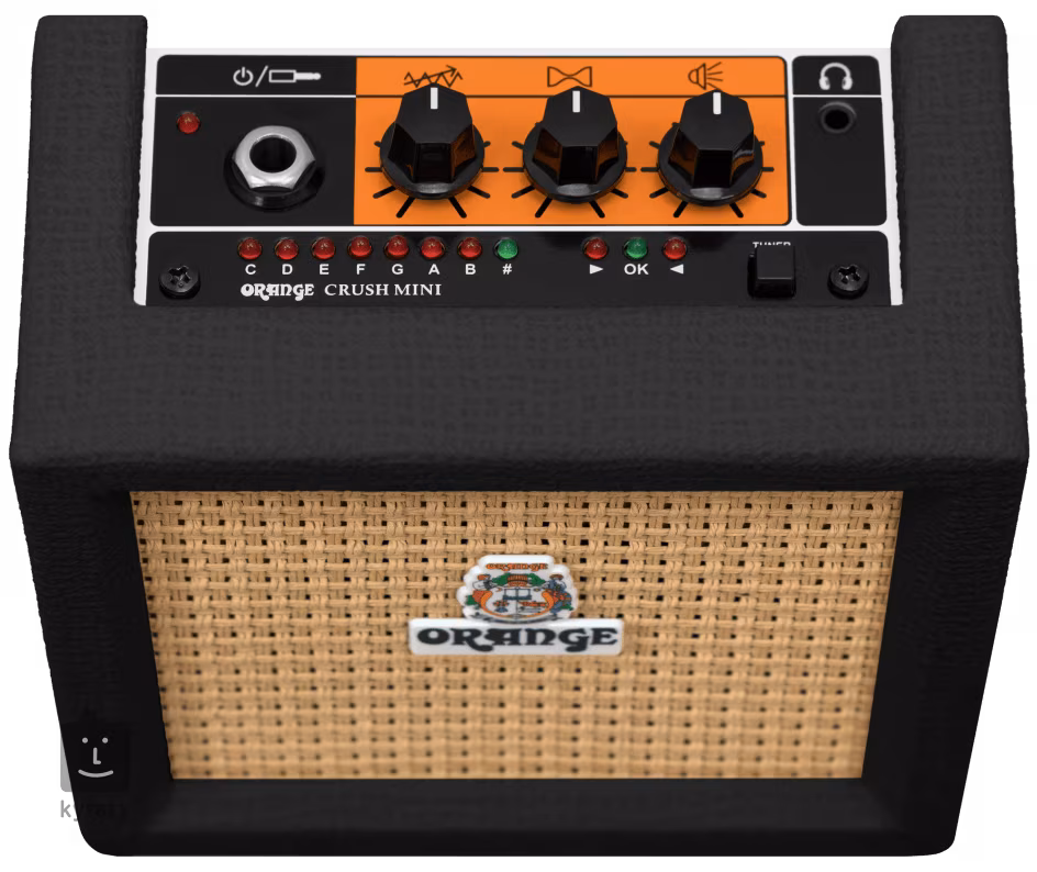 Klasický zvuk aparátů Orange si nyní můžete vychutnat kdekoliv. Orange Crush Mini je ultra kompaktní tranzistorové kombo, které můžete napájet pomocí 9V baterie nebo adaptéru – tedy stejně jako vaše efekty. Nabízí jeden kanál a tři jednoduché ovladače míry gainu, barvy zvuku a hlasitosti. Výrobci nezapomněli na vestavěnou chromatickou ladičku s přehlednými LED diodami na ovládacím panelu, sluchátkový výstup a Aux In vstup pro připojení vašich oblíbených audio/mp3 tracků do kterých tak můžete libovolně improvizovat. Výstupem s impedancí 8 ohmů připojíte ke kombu externí reprobox a dodáte tak zvuku větší prostor.