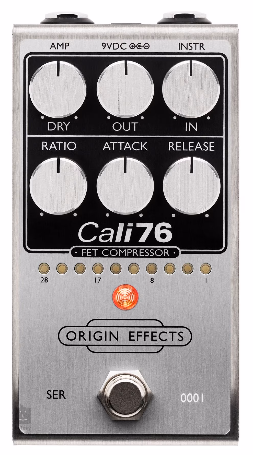 Pedálový efekt Origin Effects Cali76 FET Compressor je FET kompresor studiových kvalit inspirovaný obvody proslulého studiového kompresoru Urei 1176, jehož zvuk zdobí množství nahrávek už od 60. let minulého století. Jedná se o krabičku s kompletně analogovými obvody a kompletním setem studiových ovladačů - klasickými knoby Attack (doba náběhu komprese), Release (doba návratu do původní pozice), Ratio (poměr komprese), ovladačem paralelní komprese Dry Blend a vylepšenou dynamickou odezvou (sidechain zapojením), která se blíží odezvě originálního kompresoru ve velkém formátu Cali76 z roku 2012, který pomohl dostat značku Origin Effects do povědomí tisícovek hudebníků.