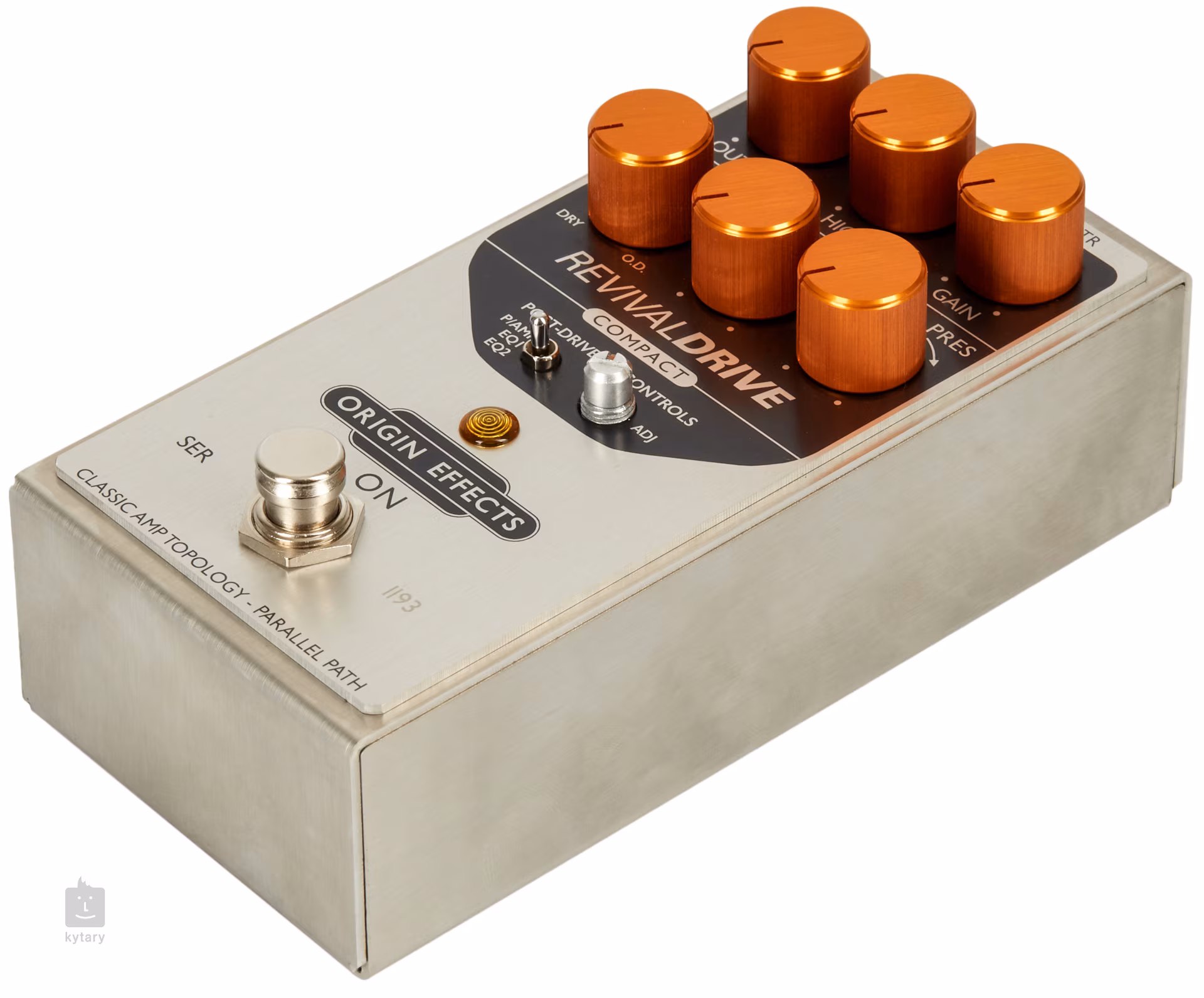 RevivalDrive Compact v kompaktním „pedalboard friendly“ formátu maximalizuje funkce podstatně většího, a co se týče ovládacích prvků komplexnějšího, pedálu RevivalDrive. Pokud zrovna nepatříte mezi „tweakery“ tak jistě uvítáte služby právě tohoto praktického pedálu. Pomocí čistě analogových komponentů replikuje všechny úrovně obvodů lampových aparátů, tj. Class A preamp, obraceč fáze (phase inverter), push-pull koncový stupeň, usměrňovač nebo vestavěný reactive load, tj. pedál modeluje interakci mezi koncovým zesilovačem lampového aparátu a reproboxem. Termín „amp in a box“ tak získává zcela nový rozměr – díky širokým možnostem nastavení Drive/EQ a Post EQ sekcí dostane z pedálu jak čistě britské (Marshall, Vox), tak i americké (Fender) zvuky nerozpoznatelné od originálu.