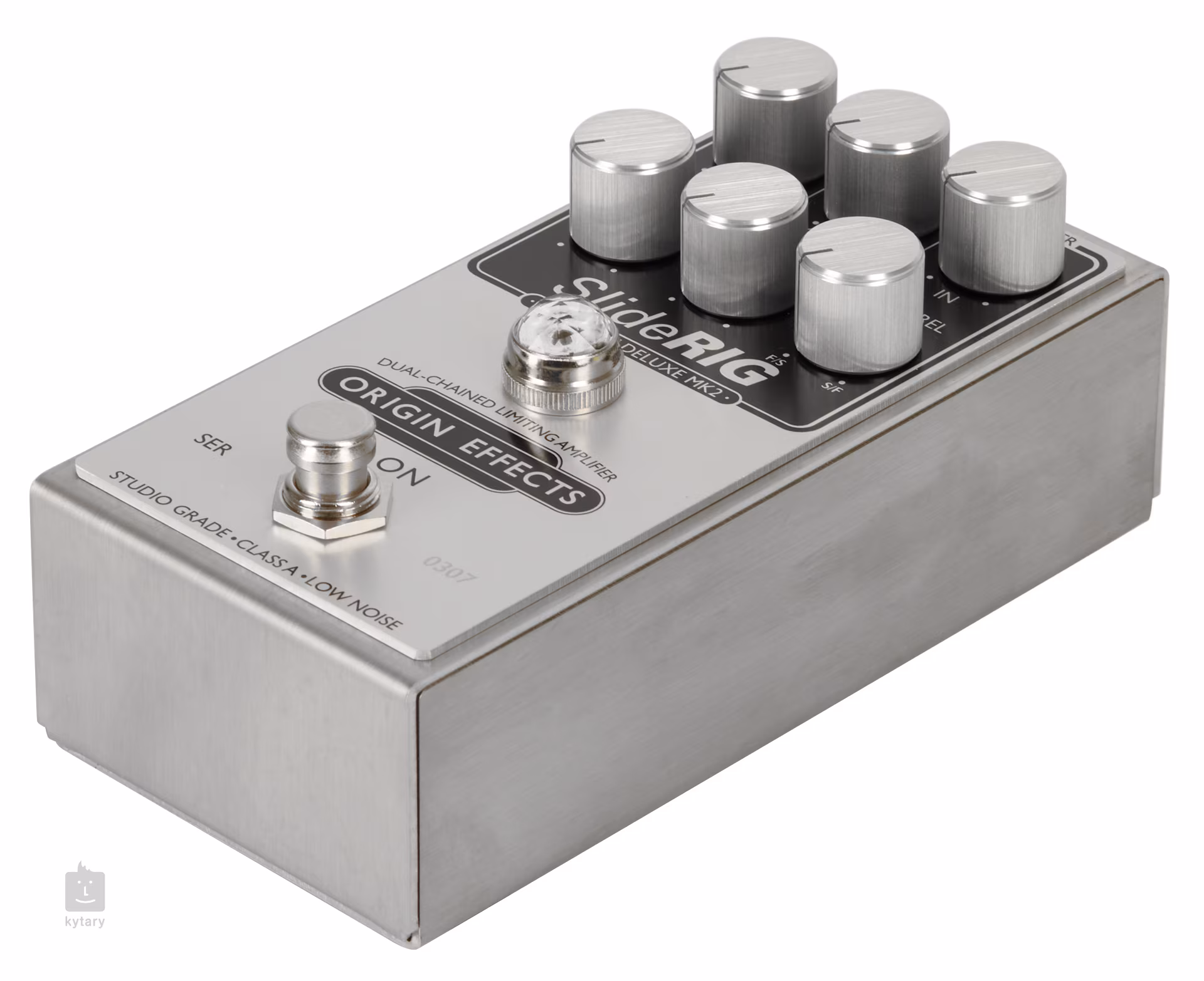 SlideRig Compact Deluxe MK2 je dvouúrovňový kytarový FET kompresor studiových kvalit ve formě kompaktního pedálového efektu. Nabízí všechny funkce staršího, podstatně rozměrnějšího, pedálu Origin Effects Slide RIG, inspirovaného stackem frontmana/kytaristy Little Feat Lowella George, za jehož signature zvukem slidu stály dva propojené kompresory 1176.