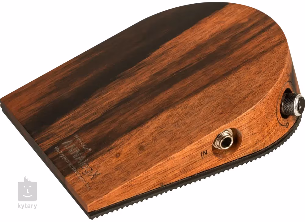Ortega Guitars ANNAlog Analog Percussion Stomp Box je kompaktní perkusní stomp box určený pro kytaristy, singer/songwritery i street performery, kteří chtějí do svého vystoupení přidat přirozený rytmický prvek. Díky čistě analogové konstrukci nevyžaduje žádné napájení – není potřeba baterie ani power supply. Stačí zapojit a hrát. Robustní tělo z výběrového ebenu dodává nejen elegantní vzhled, ale i pevnou a spolehlivou konstrukci pro každodenní použití.