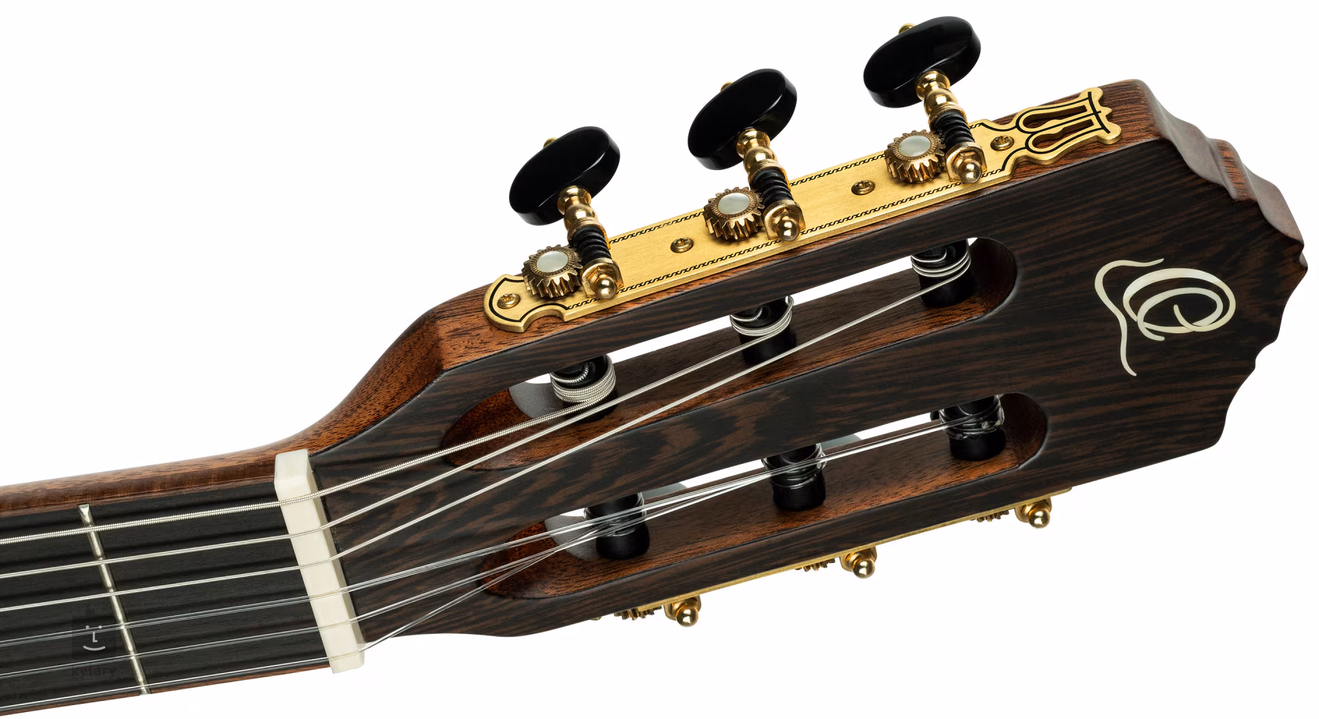 Přední deska kytary je zhotovena z masivu amerického smrku, zadní deska a luby jsou vyrobeny z ručně vybraného ebenu (white ebony) s exkluzivní kresbou dřeva. Herní komfort pozvedává na vyšší úroveň ergonomická opěrka ramene (armrest) a spodní výřez těla. K užšímu mahagonovému krku je přilepen ebenový hmatník osazený devatenácti pražci. Struny jsou uchyceny ve firemních ladicích mechanikách a ebenové kobylce. Pěkné zpracování podtrhuje obvodová lemovka těla z akácie, výložka topu z imitace perleti a dřevěná rozeta.