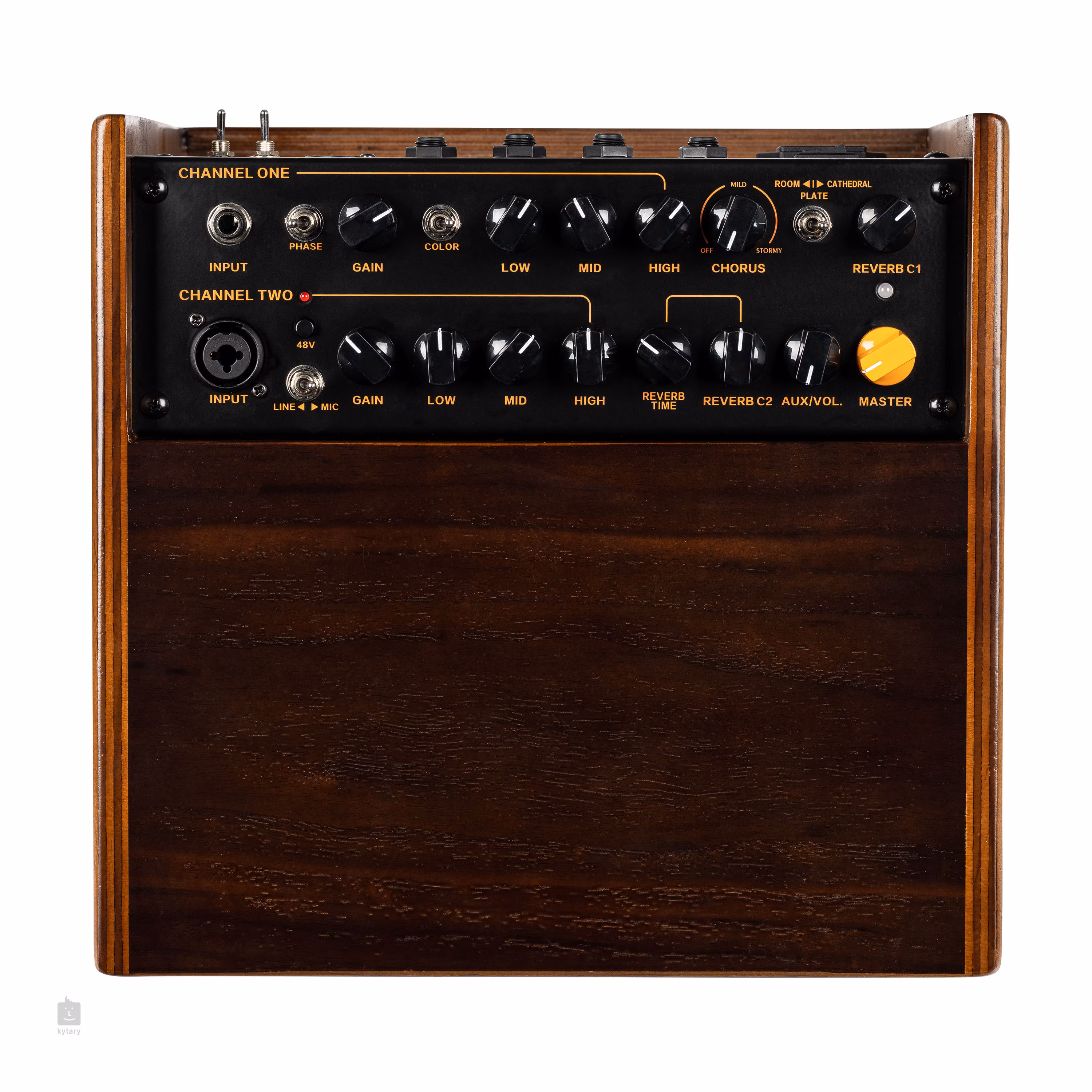 Nová akustická komba C One od firmy Ortega navazují na úspěšný zesilovač H One a reproboxy S one, jejichž šikovné funkce teď nabízí v kompaktnějším a snadno přenosném balení. Kombo je vybaveno dvěma nezávislými kanály a výkonem až 100 W RMS, se kterým si hravě poradíte jak na zkouškách, tak na koncertech. Kromě toho najdete v kombu zabudovaný efektový procesor s digitálními efekty Hall, Chorus nebo Reverb. V případě potřeby je možné kombo využít také jako kompaktní PA systém a díky 36 mm hnízdu na spodní straně ho můžete jednoduše umístit do většiny reproduktorových stojanů. Zadní strana disponuje širokou konektivitou, takže kromě standardních vstupů pro nástroj nebo mikrofon máte k dispozici také například efektovou smyčku, vstup pro aux, sluchátkový výstup, nebalancovaný line výstup nebo balancovaný XLR DI výstup s přepínatelnou pre/post ekvalizací. Celé kombo je zasazeno v luxusní dřevěné konstrukci, součástí balení je také měkký obal, který zabrání usazování prachu a jiných nečistot.