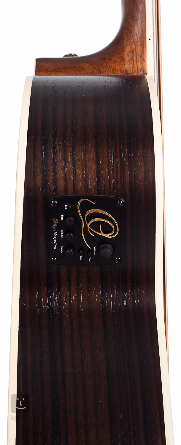 O ozvučení se stará podkobylkový piezo snímač a aktivní elektronika Ortega MagusPro-NL s třípásmovým ekvalizérem a zabudovanou ladičkou.