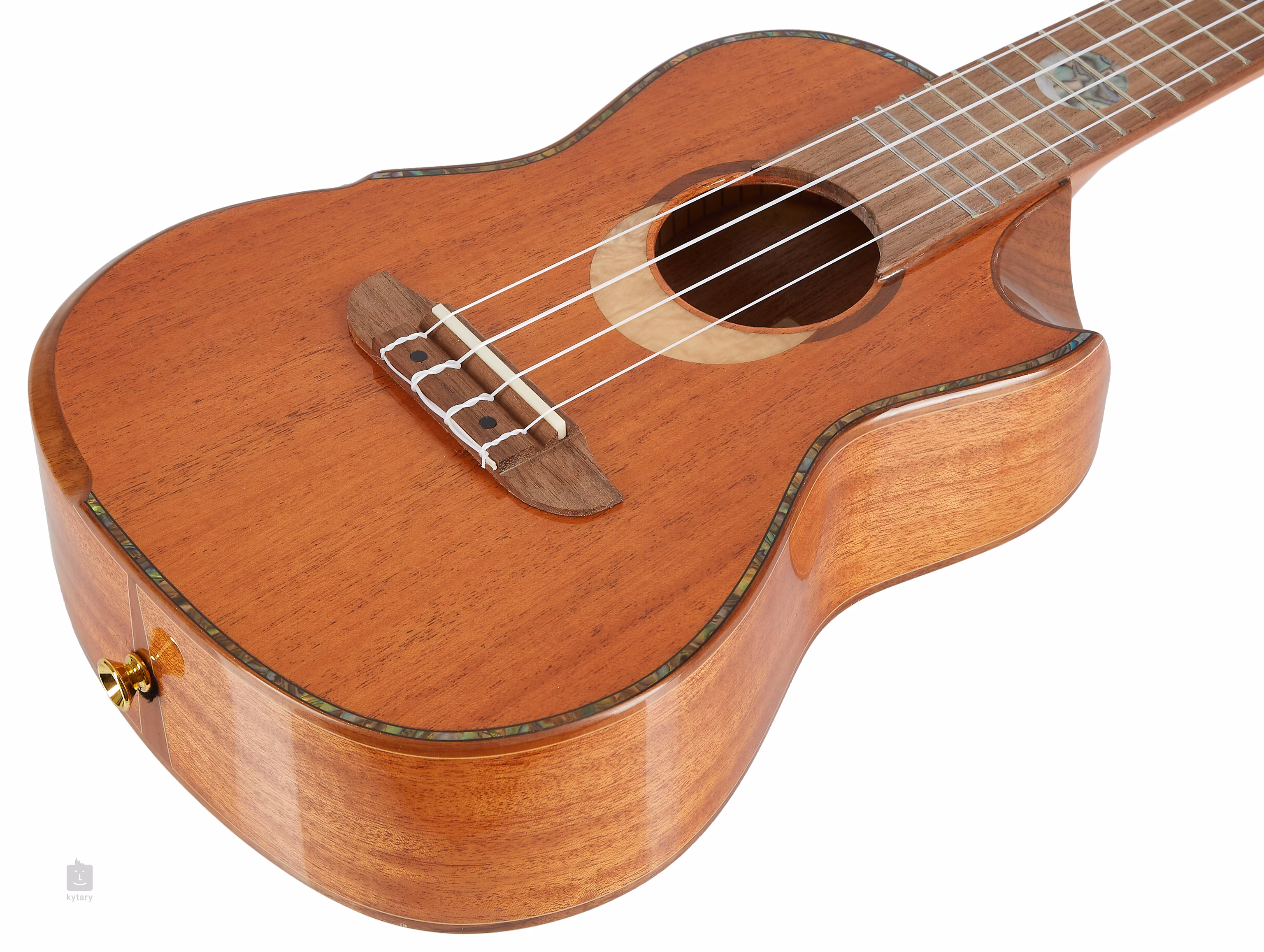 Tělo tohoto koncertního ukulele je vyrobeno z masivního mahagonu s povrchovou úpravou v podobě lesklého laku. Zkosená ramenní opěrka (armrest) a ergonomický spodní výřez těla poskytují oběma rukám hráče zvýšené pohodlí při hře. Ke krku ze dřeva okoumé přiléhá hmatník z ořechu osazený osmnácti pražci. Struny jsou uchyceny přes sedlo a nultý pražec z kosti v ořechové kobylce a klasických otevřených ladicích mechanikách ve zlatém provedení. Luxusní design a odvážný koncept podtrhují dva ozvučnicové otvory nástroje, perleťové polohové značky s motivy zatmění (Eclipse), lemovka těla a hmatníku z ořechu a perleťová výložka.