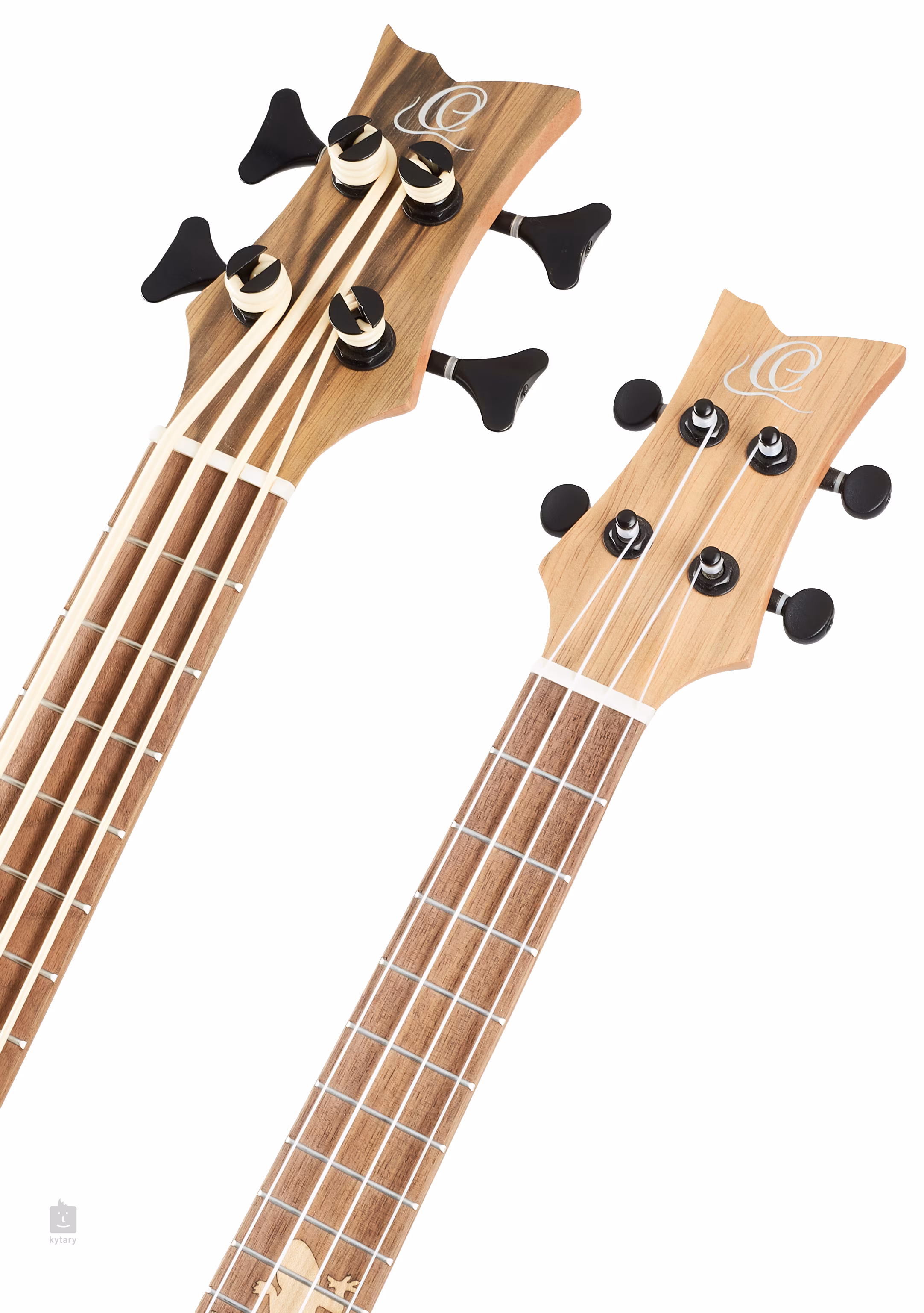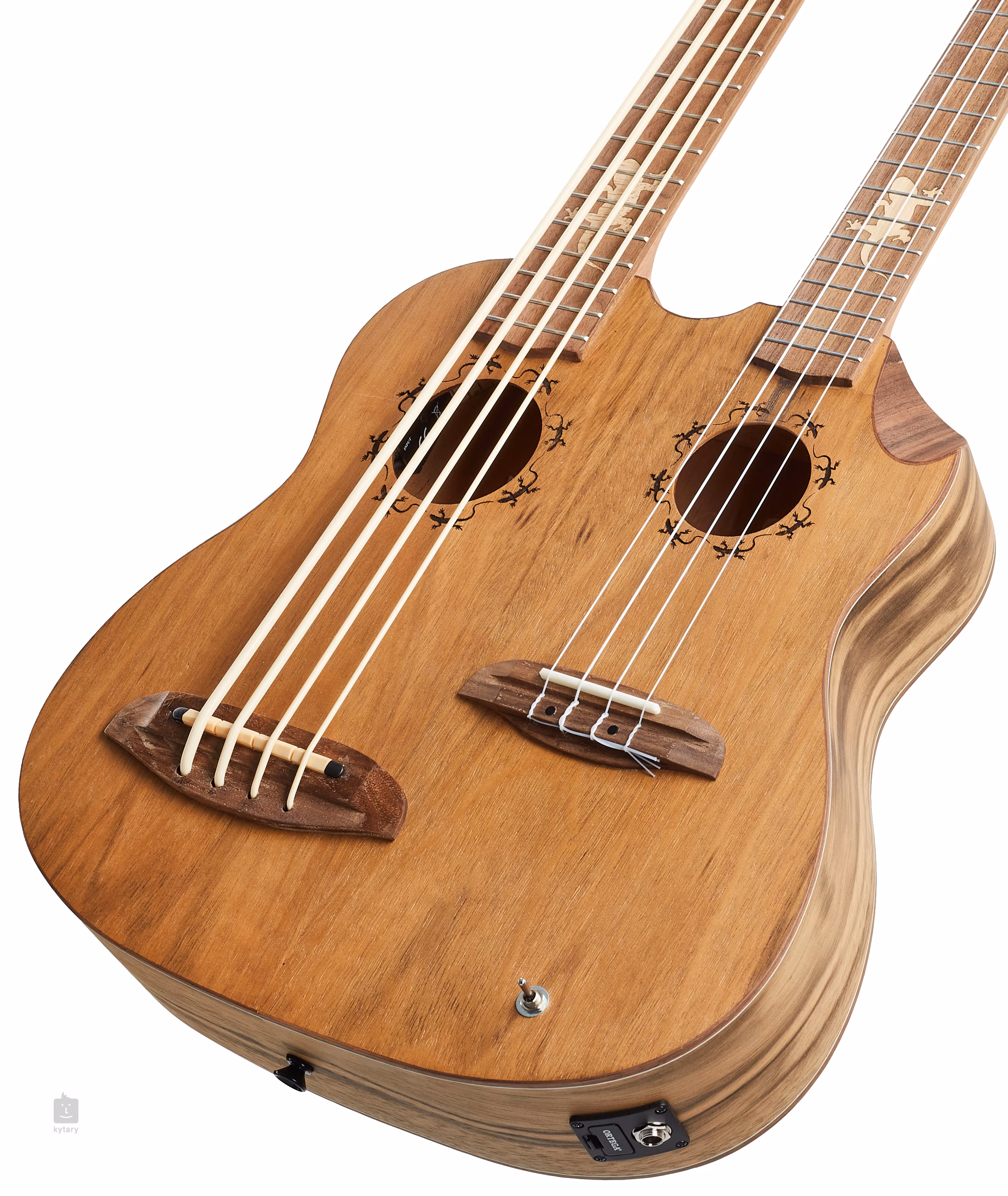 HYDRA-BSTE je dalším dvoukrkým modelem ukulele z řady Custom Built Series značky Ortega. V tomto případě kombinuje model elektroakustického basového ukulele s tenorovým, kdy vychází z designu nástrojů Ortega Lizard zkrášlených rytinami ještěrek.
