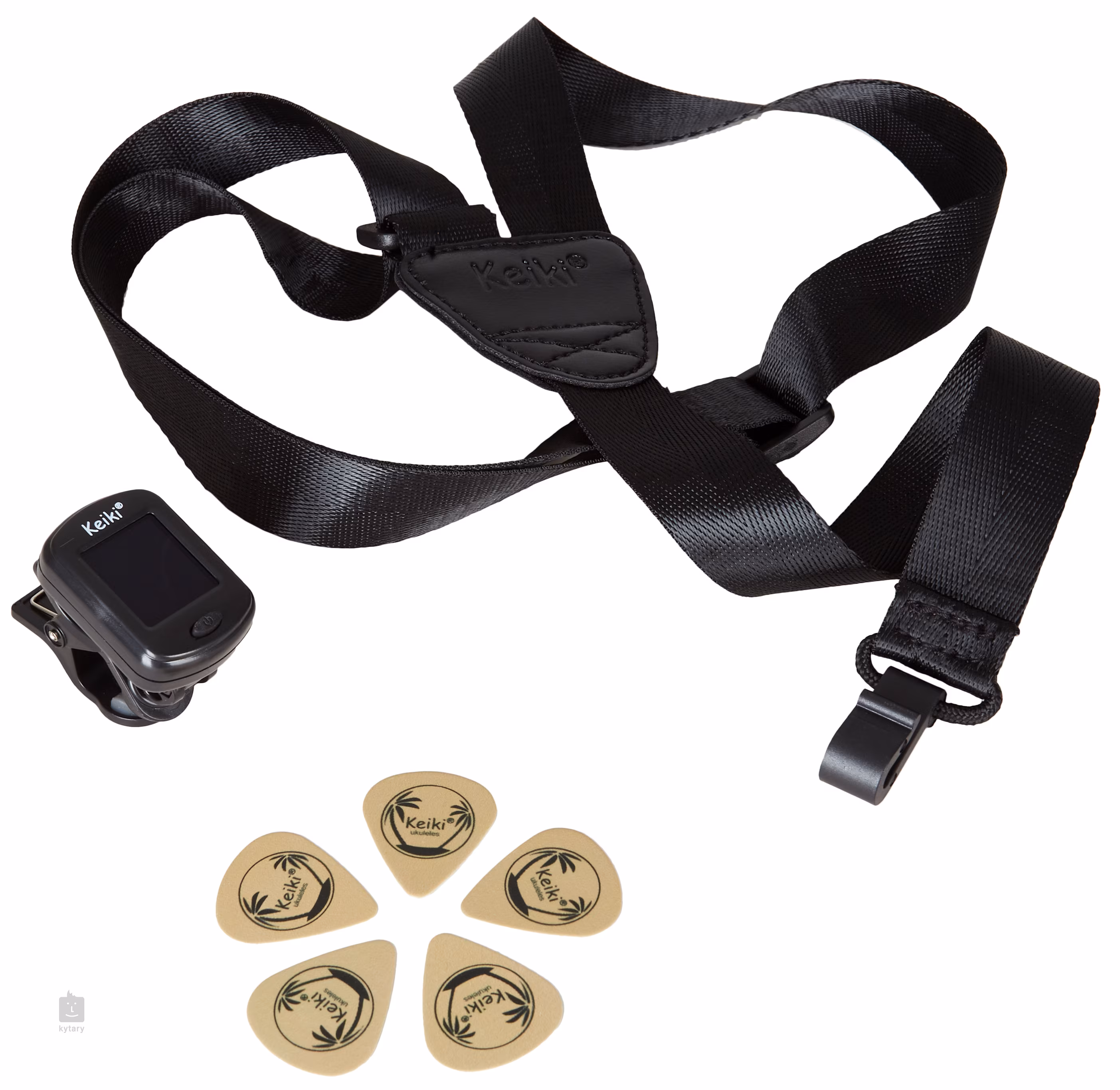 Součástí balení je klipová ladička, pět trsátek (medium), obal (drawstring bag) a popruh s úchytem v ozvučnici (vhodný pro ukulele bez tradičních dvoubodových úchytů na řemen).