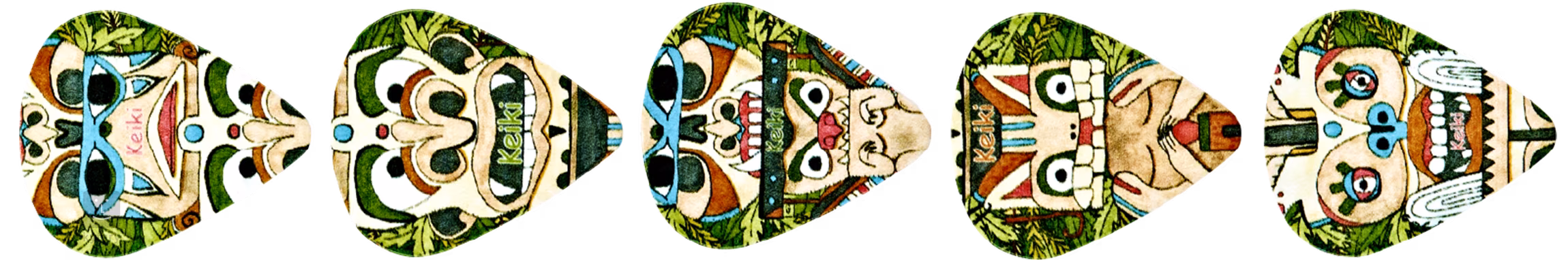 Trsátka z řady Keiki značky Ortega na první pohled zaujmou zajímavým designovým provedením s barevnou grafikou. Jsou vyrobena z vysoce kvalitního celuloidového materiálu, který jim dodává výjimečnou flexibilitu a jasný, průrazný atak. V balení najdete pět kusů trsátek o tloušťce 0,71 mm. Ideální volba pro začátečníky i pokročilé hráče.