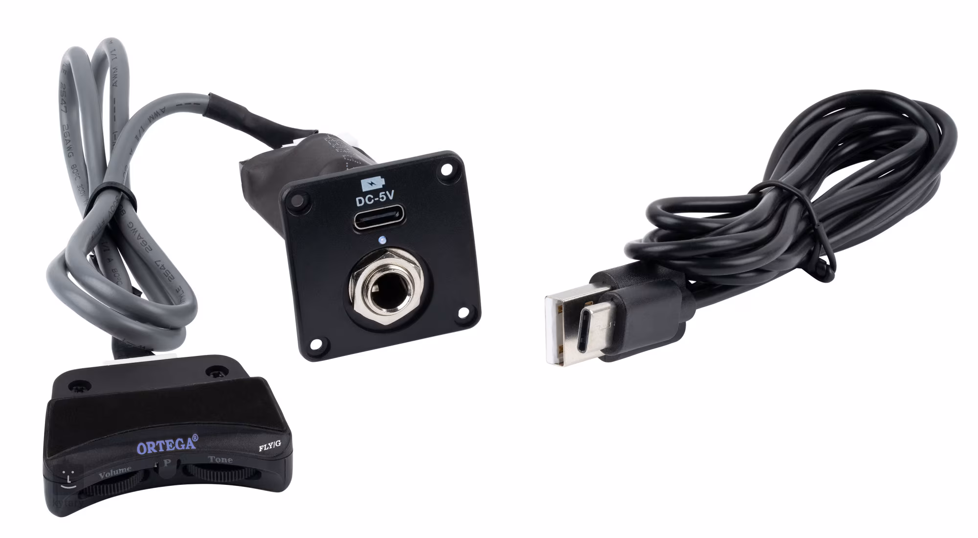 Aktivní elektronika Ortega MAGUSFLY/G představuje ideální způsob, jak ozvučit akustickou nebo klasickou kytaru. Balení obsahuje předzesilovač určený pro montáž do ozvučnicového otvoru s ovladači Volume a Tone, vestavěnou nabíjecí baterii s potřebným USB-C kabelem, piezo snímač a vazačku kabelů.