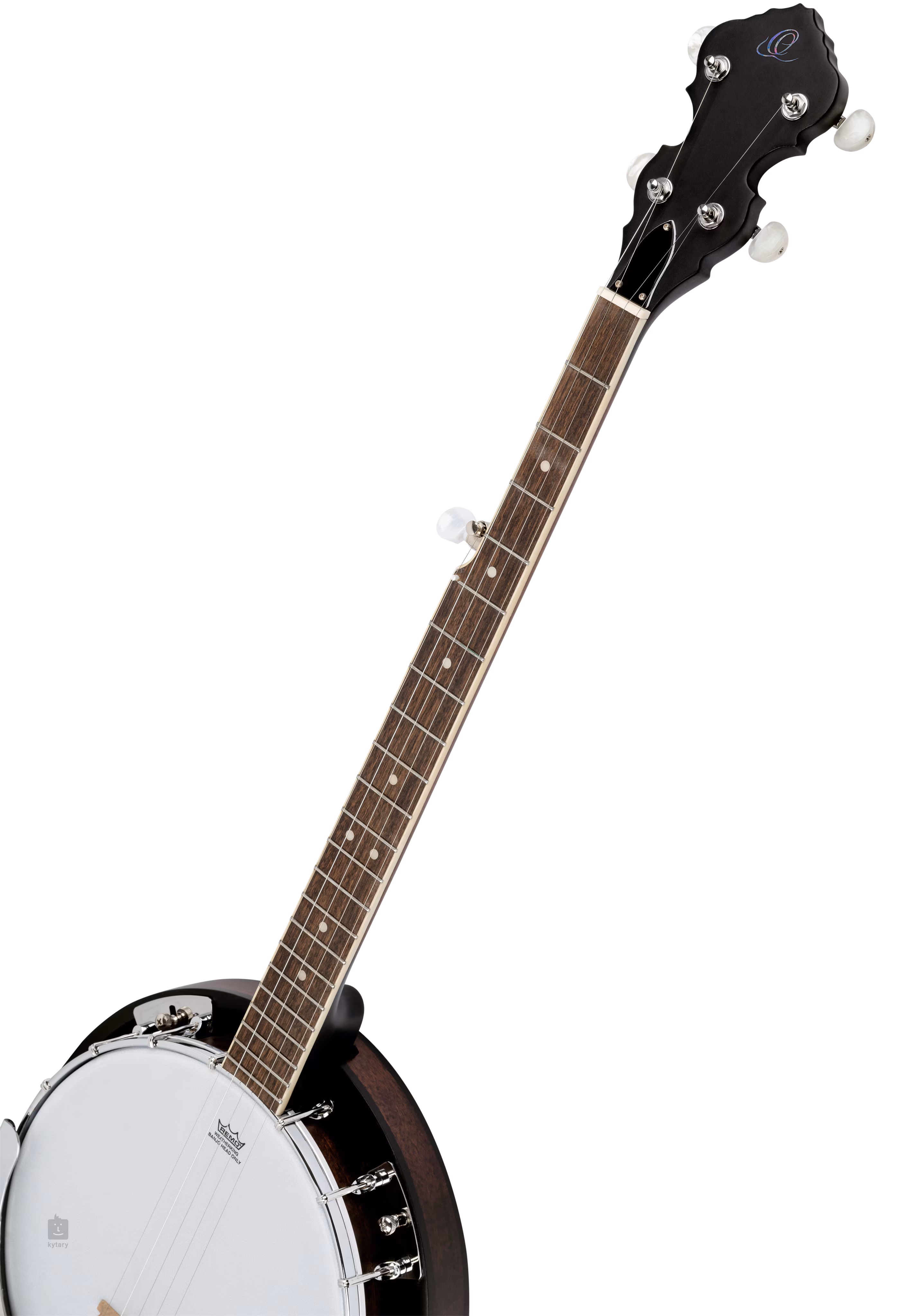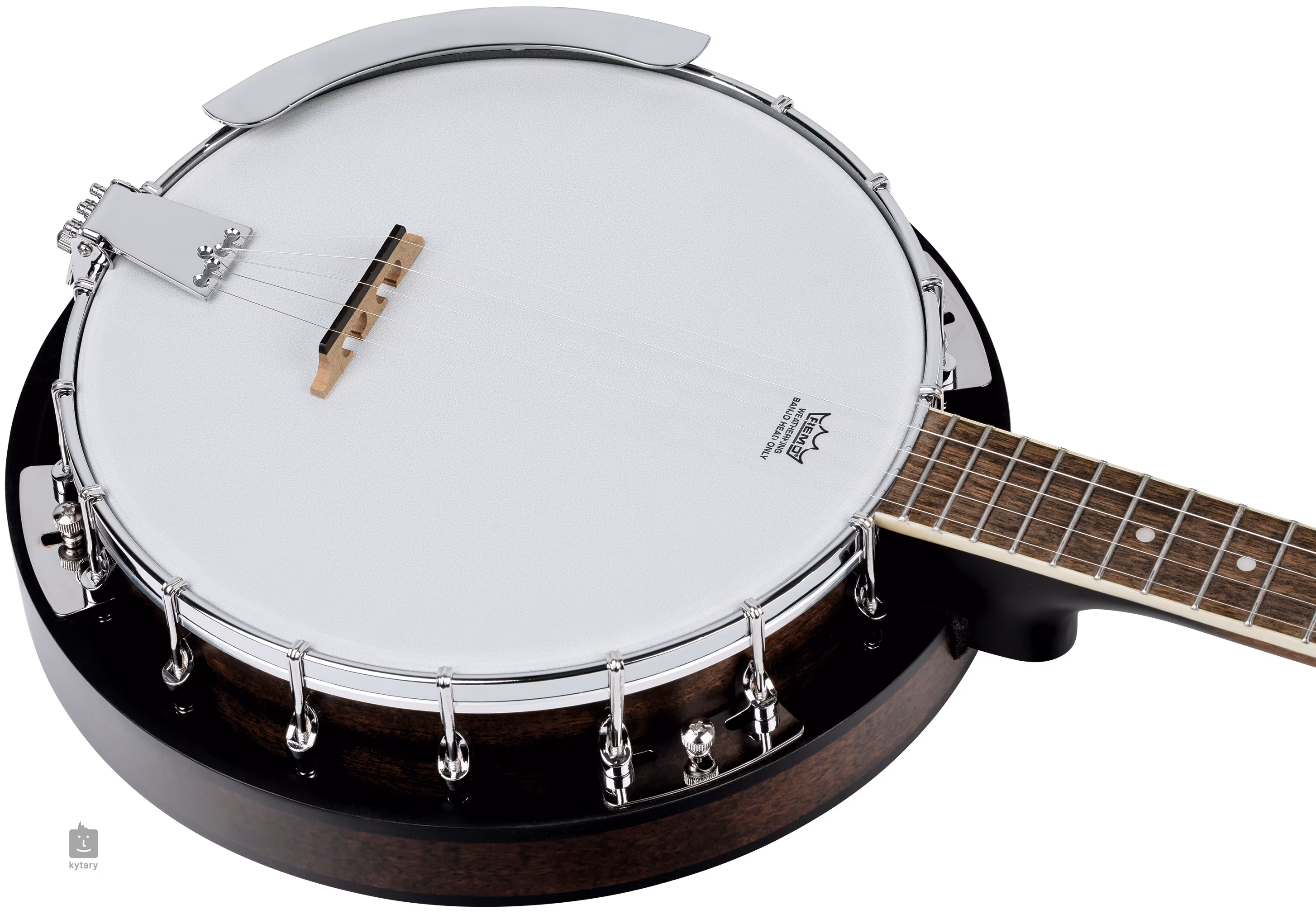 Pětistrunné banjo Ortega OBJ150-WB z řady Americana Series spojuje tradiční vzhled a feel se současnými prvky. Jedná se banjo s mahagonovým rezonátorem, tj. uzavřenou zadní deskou. Mahagonový krk, rezonátor a korpus nástroje zdobí finiš Satin Whiskey Burst, hmatník je palisandrový. Ke korpusu je napínacím systémem připevněna blána značky Remo. Struny jsou uchyceny v ladících mechanikách kytarového typu (Gold Tone) a přes ebenovou kobylku s javorovou základnou ve struníku. Pěkné zpracování podtrhuje chromovaný hardware a opěrka ramene.