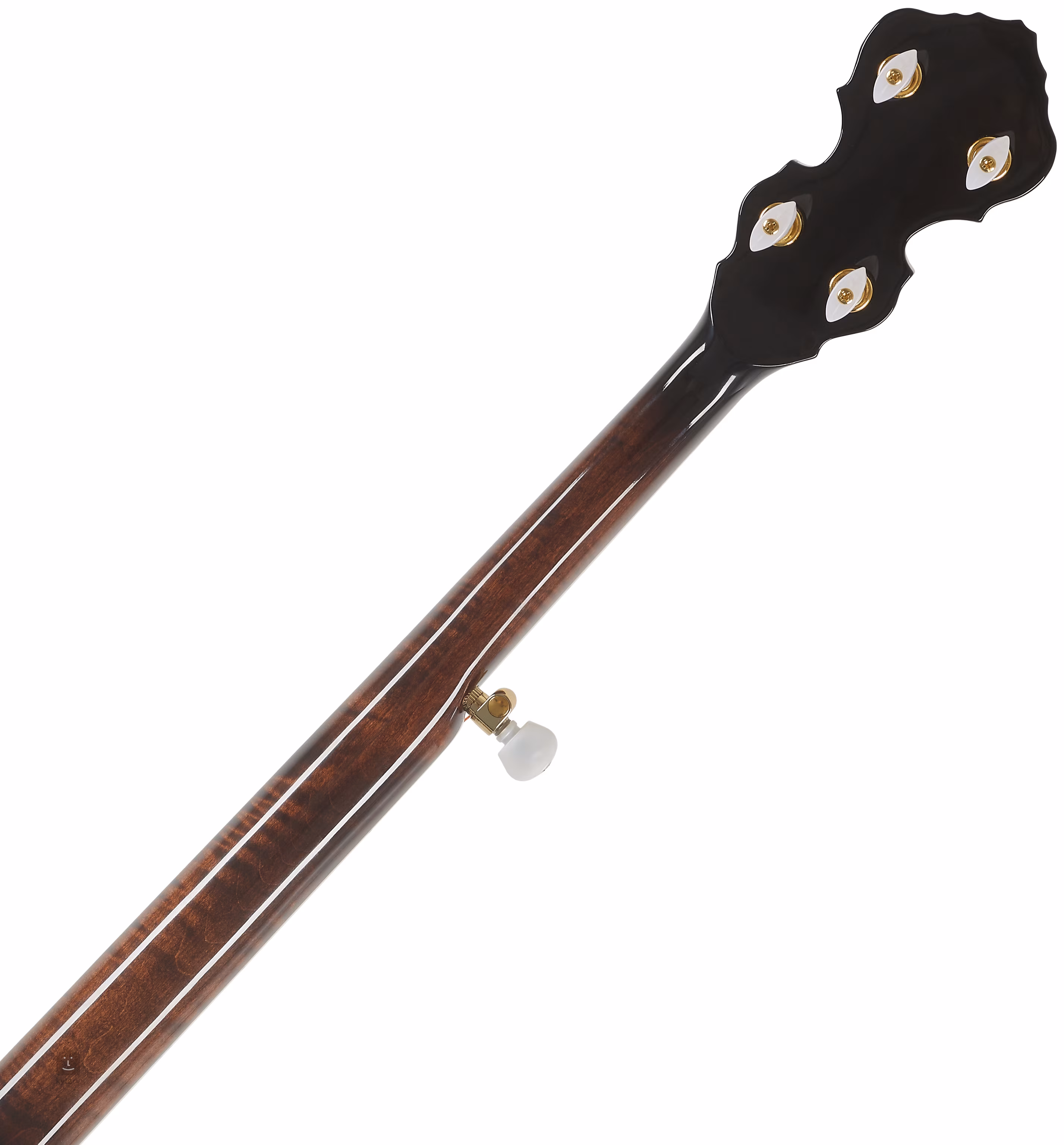 OBJ950-MA je luxusní pětistrunné banjo typu closed back, tj. s uzavřenou zadní deskou v podobě rezonátoru z fládrovaného javoru s parádní kresbou dřeva. Disponuje mosazným tone ringem, krkem z fládrovaného javoru, ebenovým hmatníkem osazeným zdobnými intarziemi, ramenní opěrkou zkrášlenou rytinami s firemní tematikou, přírubou (flange) z jednoho kusu, korpusem z tří vrstev masivního javoru a k němu ráfkem přichycenou blánou značky Remo. Milovníky tradice potěší uchycení strun v chromovaných ladících mechanikách typu Geared, které vypadají jako klasické mechaniky typu Friction, ale poskytují stabilnější a přesnější ladění. Exkluzivní design podtrhuje zlatý hardware.