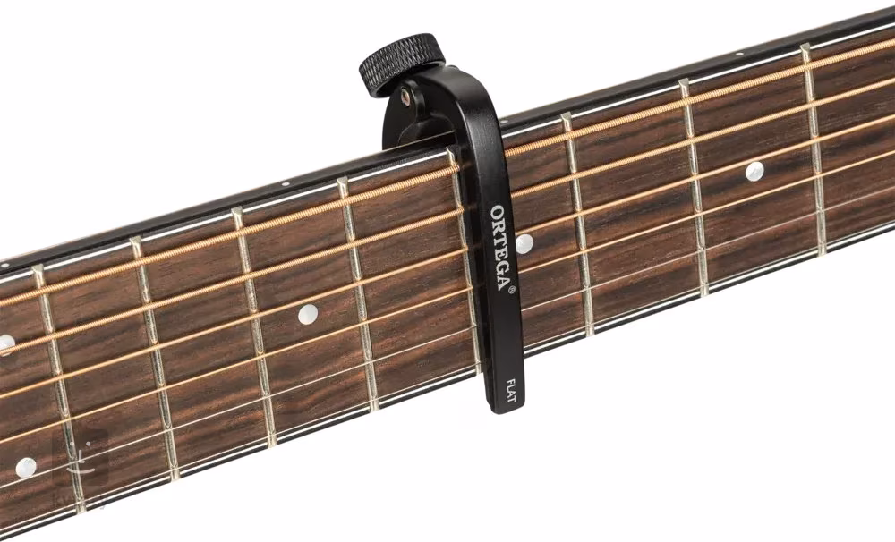 Kapodastr je vybaven mikrometrickým šroubovacím mechanismem pro přesné nastavení přítlaku, což umožňuje zachovat dokonalou intonaci bez nežádoucího drnčení nebo rozlaďování. Oboustranné silikonové podložky zajišťují pevný úchop a zároveň chrání hmatník i krk nástroje před poškozením. Model je určen pro rovné hmatníky klasických kytar (s nylonovými strunami) a je kompatibilní s nástroji se šířkou nultého pražce až 52 mm.