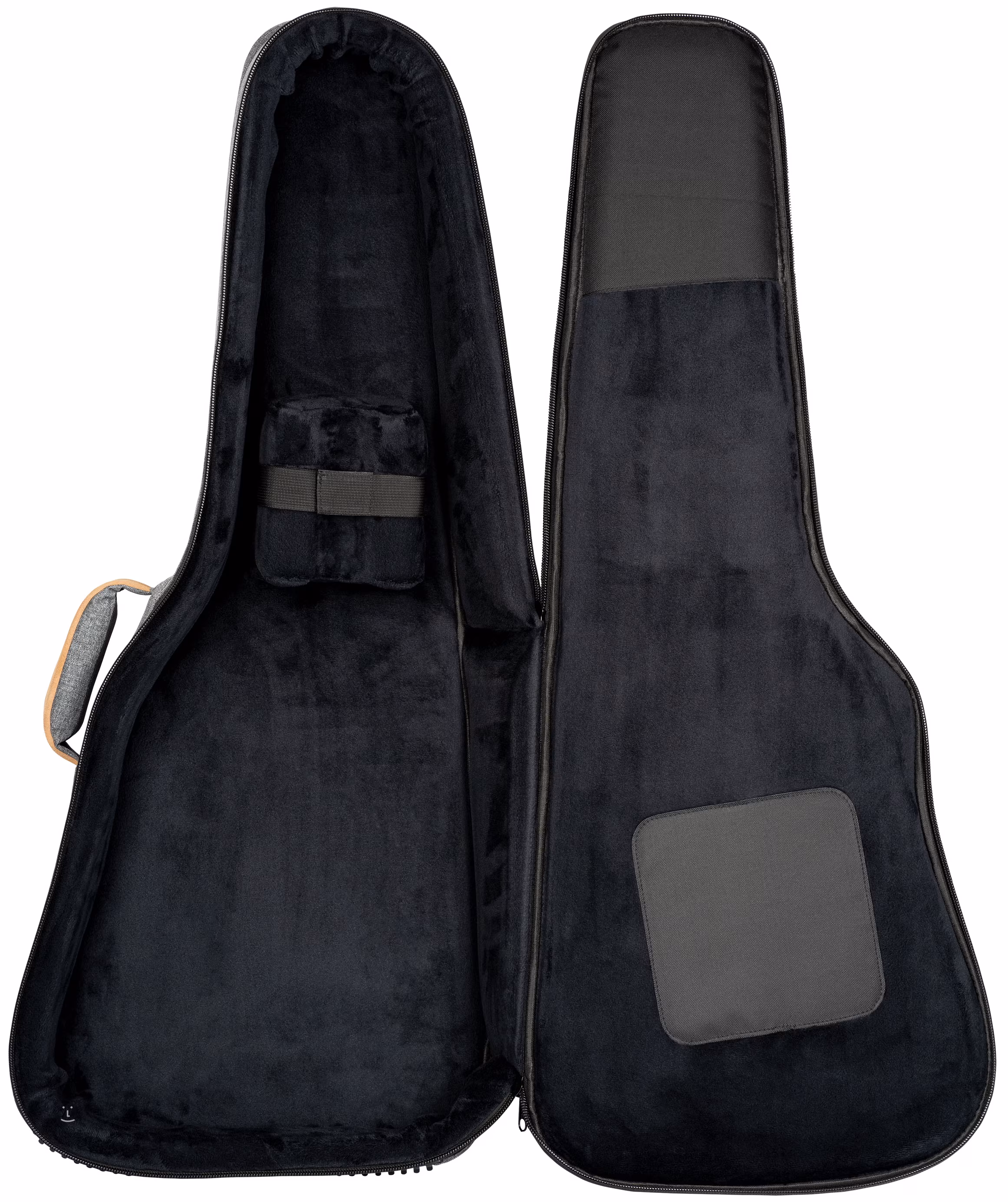 Nová řada obalů Deluxe od firmy Ortega poskytne vašemu nástroji nekompromisní ochranu při každé příležitosti a zároveň jistě zaujme svým elegantním designem. Vnější vrstva je vyrobena z kvalitní voděodolné bavlněné tkaniny, uvnitř pak najdete příjemný semišový potah, který ochrání nástroj před poškrábáním. O maximální bezpečí nástroje se postará až 20 mm silné polstrování, které odolá i silným nárazům, výztuha pro krk nebo například zesílená gumová spodní strana. Na cestách pak jistě oceníte pohodlné polstrované ramenní popruhy, rukojeť se semišovým potahem nebo dvě prostorné kapsy pro příslušenství.