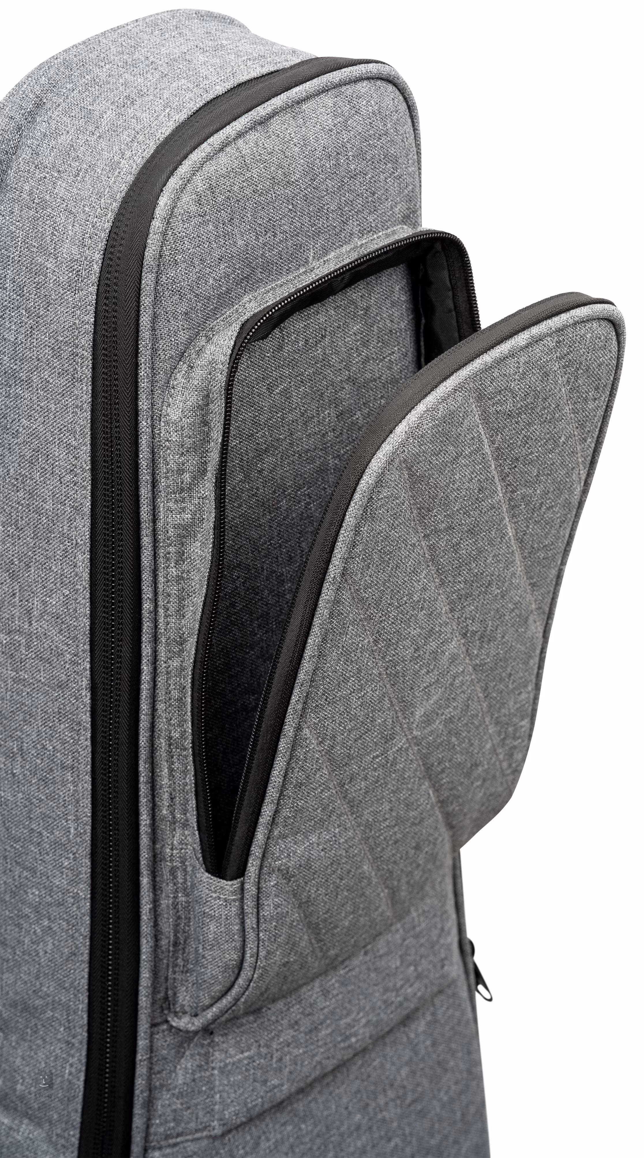 Nová řada obalů Deluxe od firmy Ortega poskytne vašemu nástroji nekompromisní ochranu při každé příležitosti a zároveň jistě zaujme svým elegantním designem. Vnější vrstva je vyrobena z kvalitní, voděodolné bavlněné tkaniny, uvnitř pak najdete příjemný semišový potah, který ochrání nástroj před poškrábáním. O maximální bezpečí nástroje se postará až 20 mm silné polstrování, které odolá i silným nárazům, výztuha pro krk nebo například zesílená gumová spodní strana. Na cestách pak jistě oceníte pohodlné polstrované ramenní popruhy, rukojeť se semišovým potahem nebo dvě prostorné kapsy pro příslušenství.