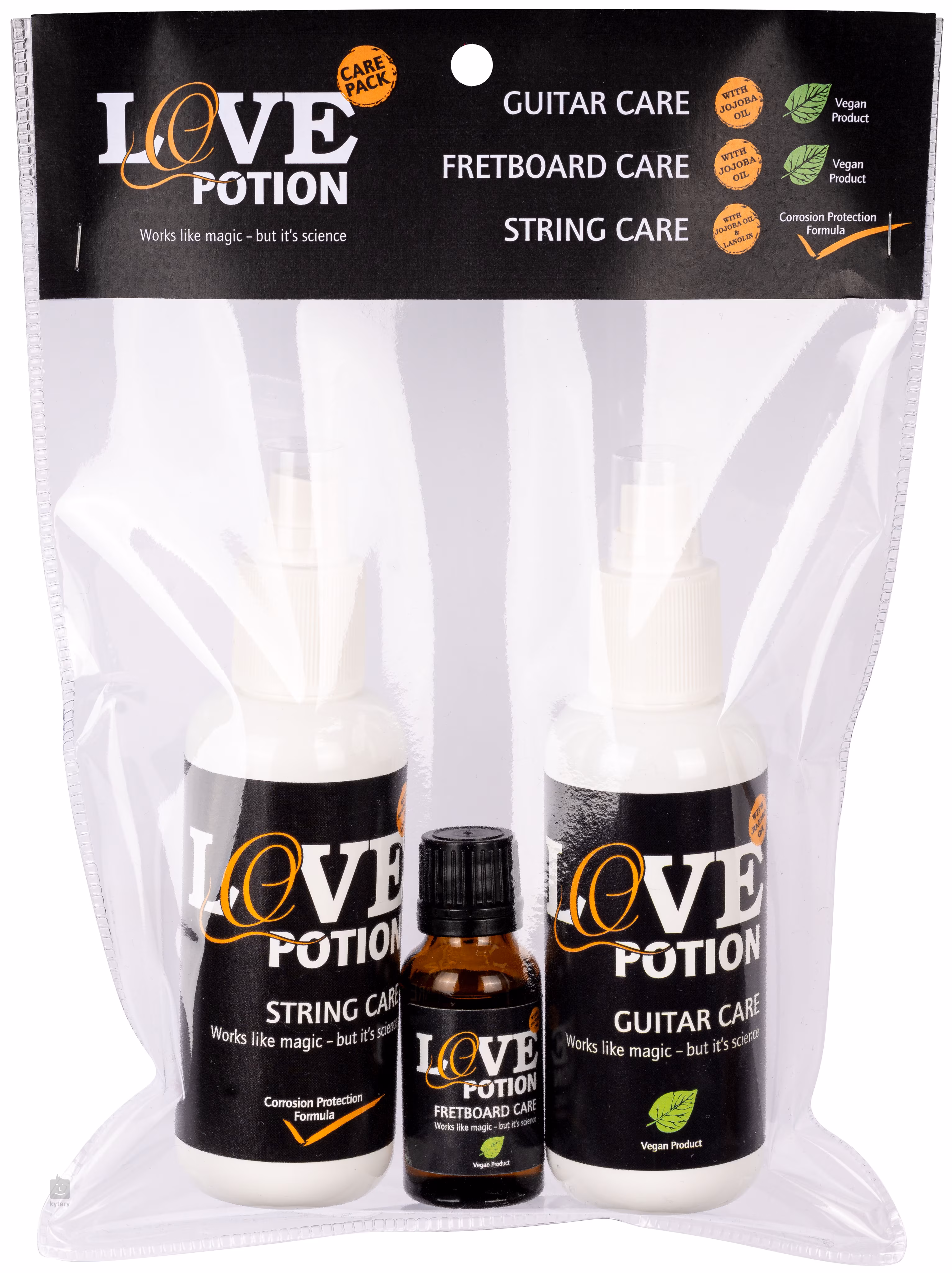 V této sadě najdete vše, co budete pro svůj nástroj potřebovat – 150 ml čistič na tělo a krk, 150 ml čistič na struny a 20 ml čistič na hmatník.