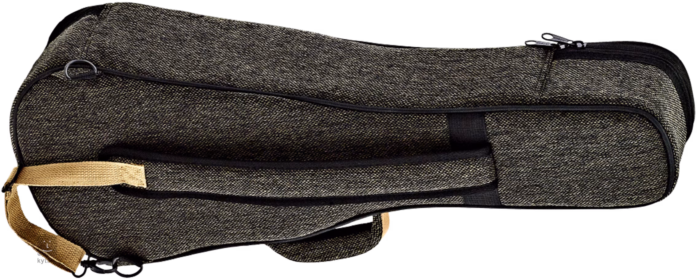 Obal je vyroben z kombinace plátna, bavlny a pravého semiše, což zajišťuje jeho stylový vzhled a výjimečnou odolnost. O ochranu nástroje se stará 22mm polstrování a 5mm skelet z tvrzeného polyethylenu, který obalu propůjčuje jeho pevnost. Uvnitř obalu bude vaše ukulele odpočívat v měkké výstelce z černého sametu a jeho krk nádherně zapadne do měkkého držáku s bezpečnostními suchými zipy. Na vnější straně se pak nachází dvě rozměrné kapsy pro uložení příslušenství, dvojice pohodlných zádových popruhů s nastavitelnou délkou a vysoce komfortní semišová rukojeť.