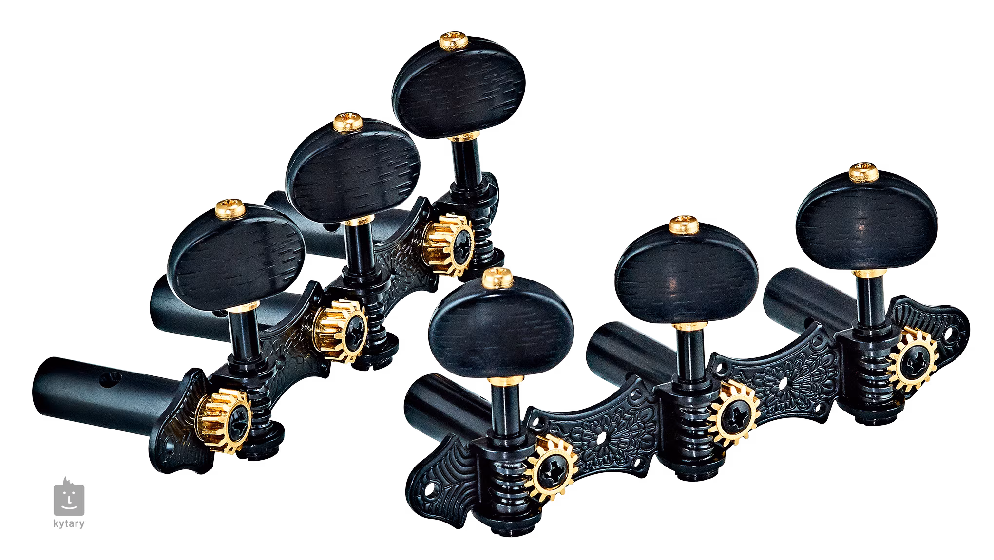 Ladicí mechaniky v černé barvě s černými ladicími kolíky. Převodový poměr 1:14 zaručuje rychlé a bezproblémové ladění.