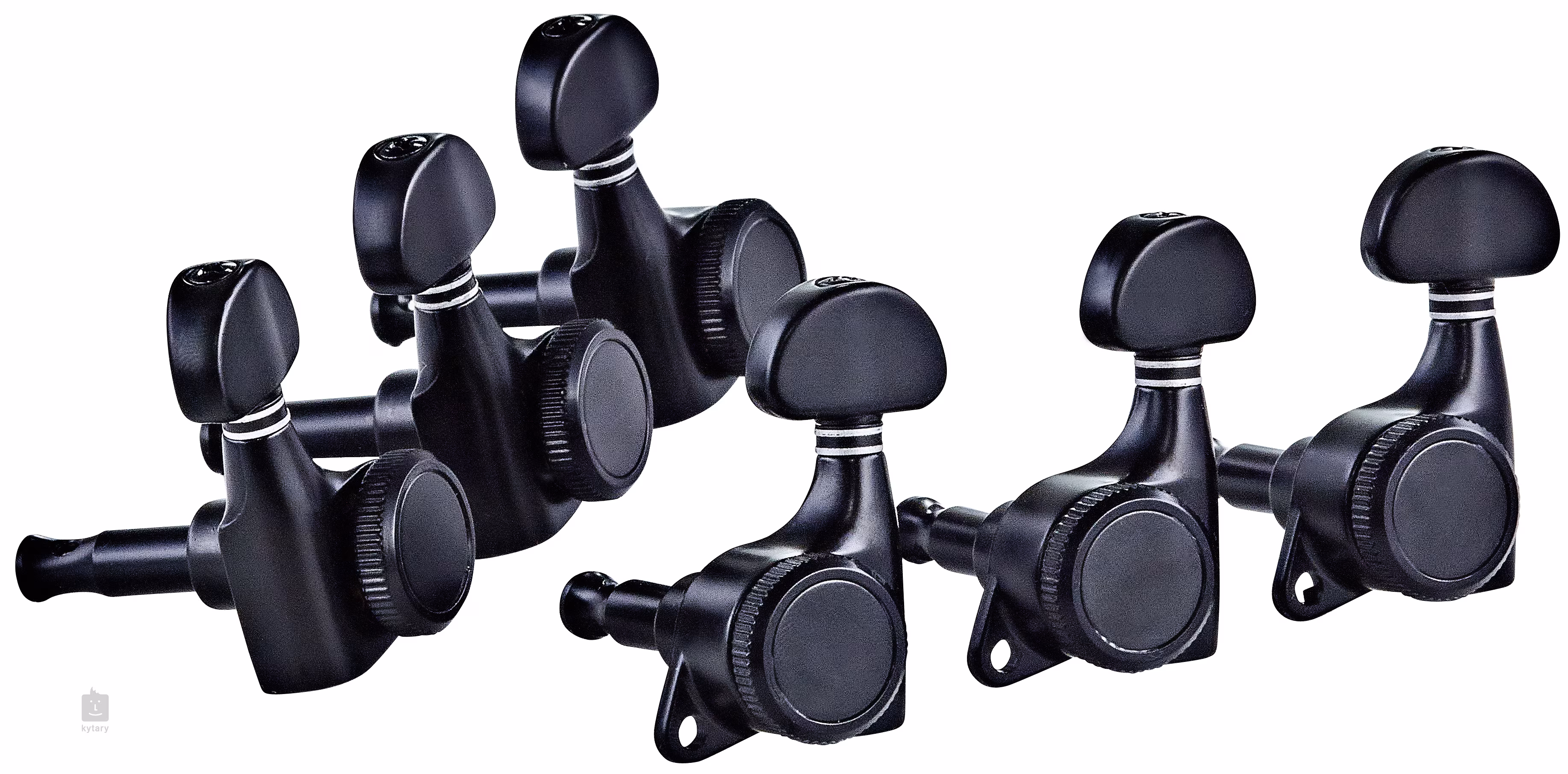 Uzamykatelné ladicí mechaniky pro elektrickou kytaru. Jsou vyrobeny z kovu v leskle černé povrchové úpravě. Vhodné pro nástroje s rozložením mechanik ve stylu 3+3.