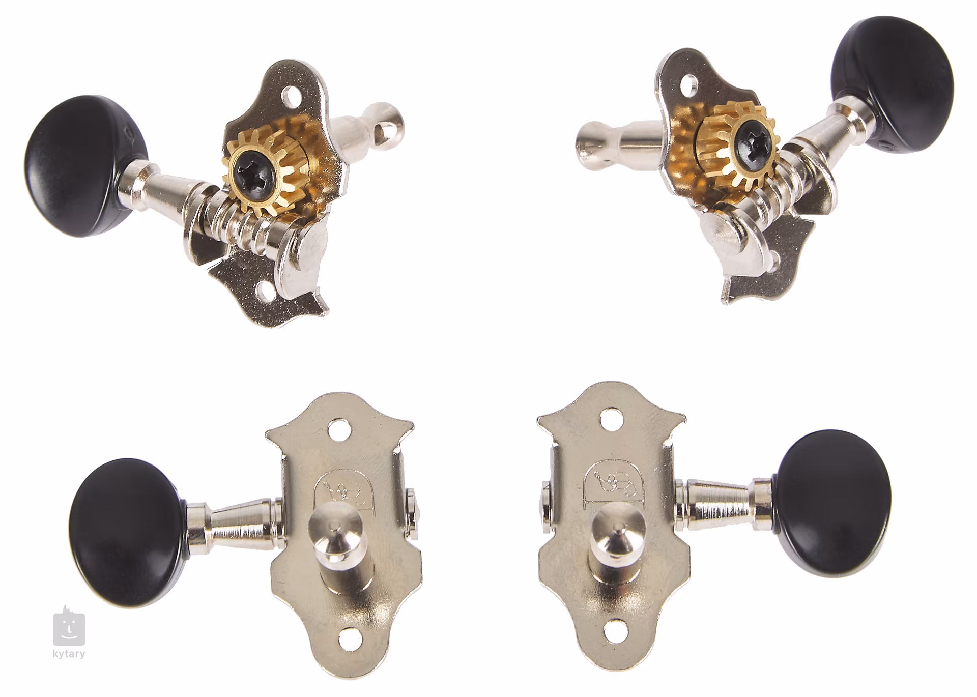 Otevřené ladicí mechaniky pro ukulele. Jsou vyrobeny z kovu v niklovém finiši, kolíčky jsou z odolného černého ABS plastu.