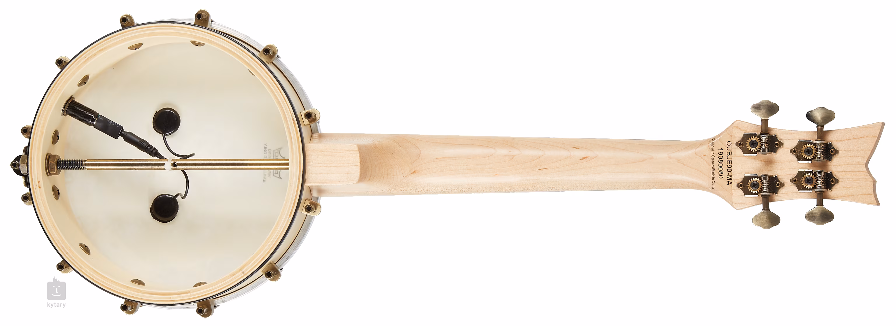 Elektroakustické banjolele Ortega OUBJE90-MA odpovídá délkou menzury ukulelím koncertní velikosti. Jedná se o tzv. Open-Back model, tj. nástroj s otevřenou zadní deskou. Nabízí korpus zhotovený z javorové překližky, javorový hmatník osazený osmnácti pražci, uchycení strun v ladících mechanikách kytarového typu a možnost ozvučení díky pasivní elektronice.
