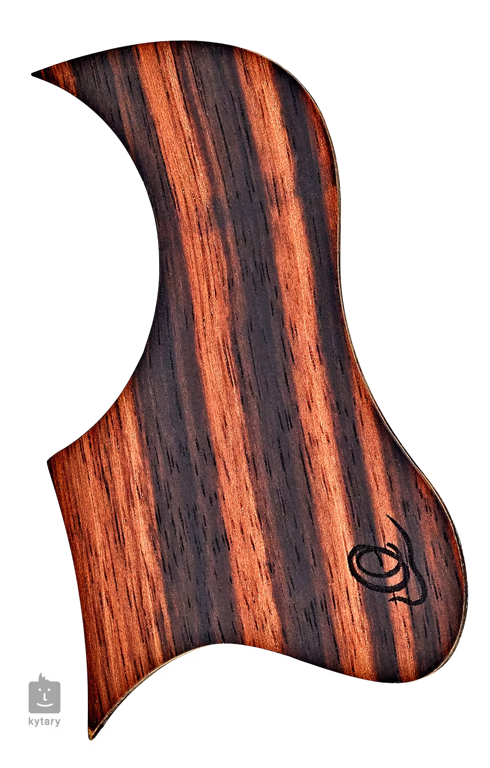 Pickguard z ebenového dřeva vhodný pro sopránové a koncertní ukulele (a další nástroje s průměrem ozvučnice 55 mm). Pomocí oboustranné samolepicí pásky jej snadno připevníte k tělu nástroje bez použití dalších lepidel.