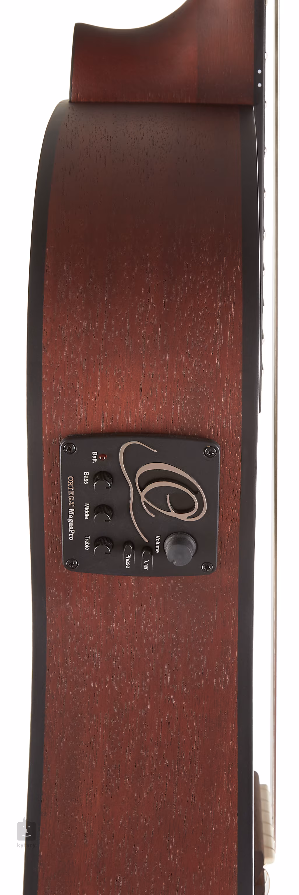 Tento konkrétní model je navíc osazen elektronikou Ortega MagusPro s integrovanou ladičkou, třípásmovým ekvalizérem, ovladačem hlasitosti a tlačítkem Phase s funkcí obrácení fáze (potlačení šumu).