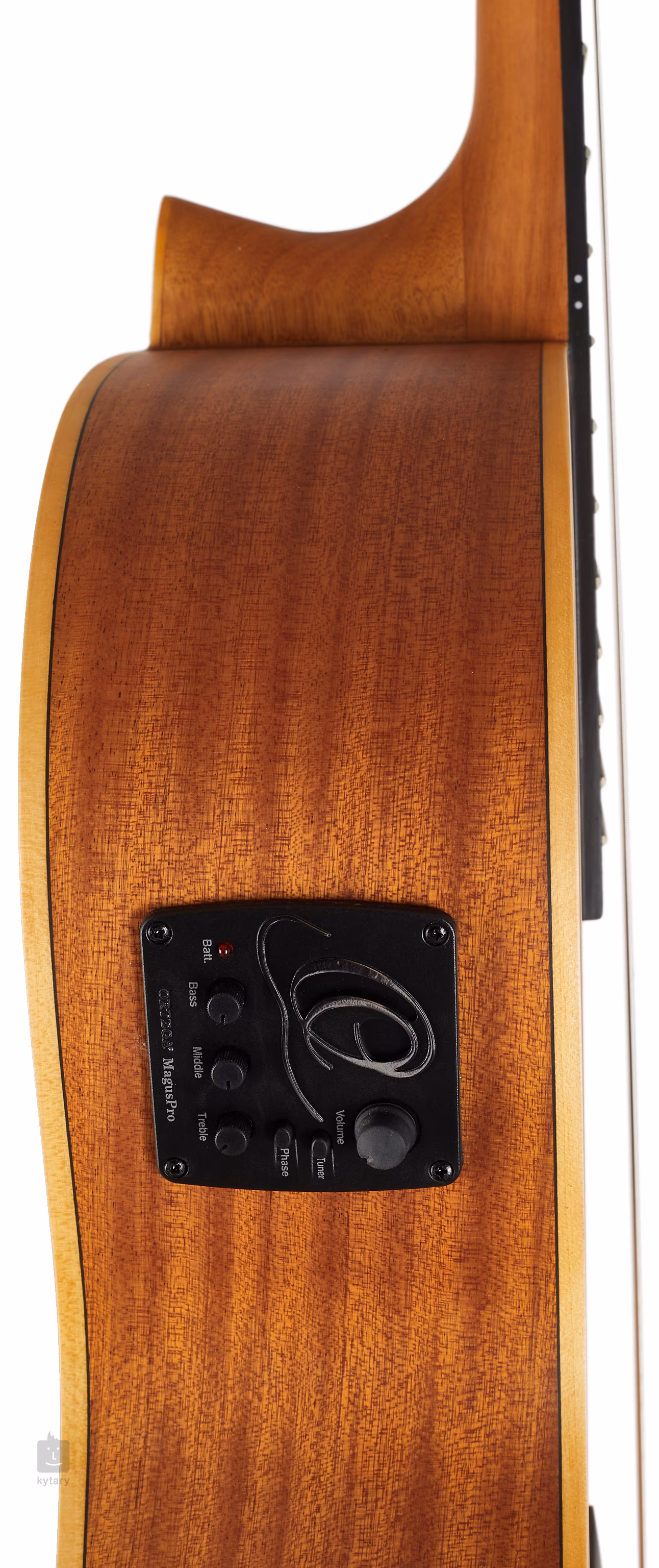 Tento konkrétní model je navíc osazen elektronikou Ortega MagusPro-NL s integrovanou ladičkou, třípásmovým ekvalizérem, ovladačem hlasitosti a tlačítkem Phase s funkcí obrácení fáze (potlačení šumu).