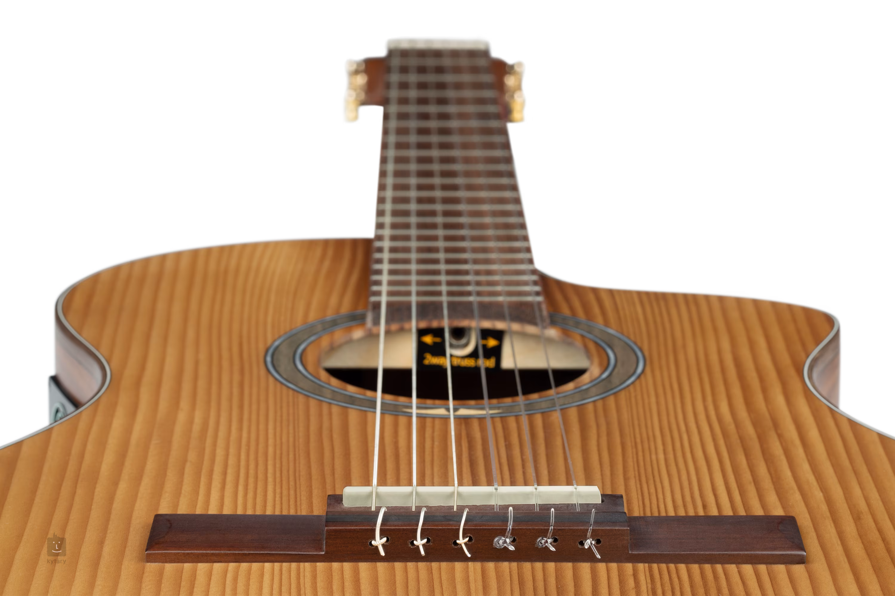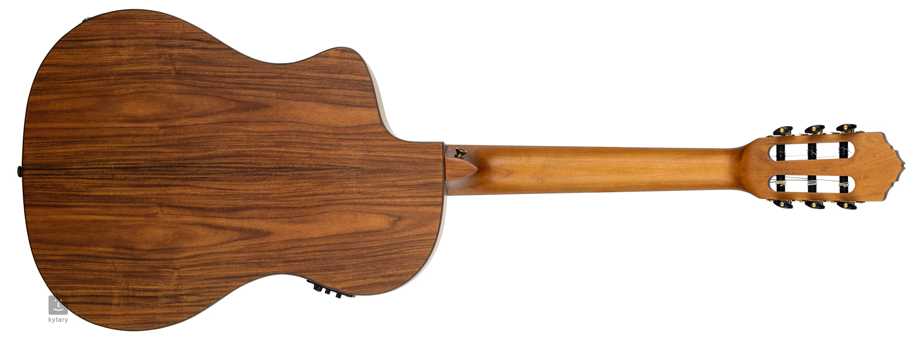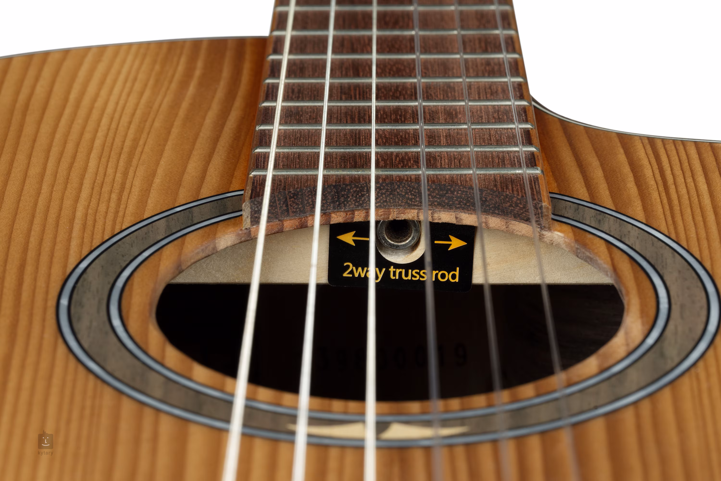 Struny jsou uchyceny v klasických ladících mechanikách a kobylce z jatoby. Pěkné zpracování podtrhuje matná úprava přední desky (Satin Dark), obvodová lemovka těla hmatníku z ořechu, zdobná rozeta a perleťové logo na hlavici nástroje.