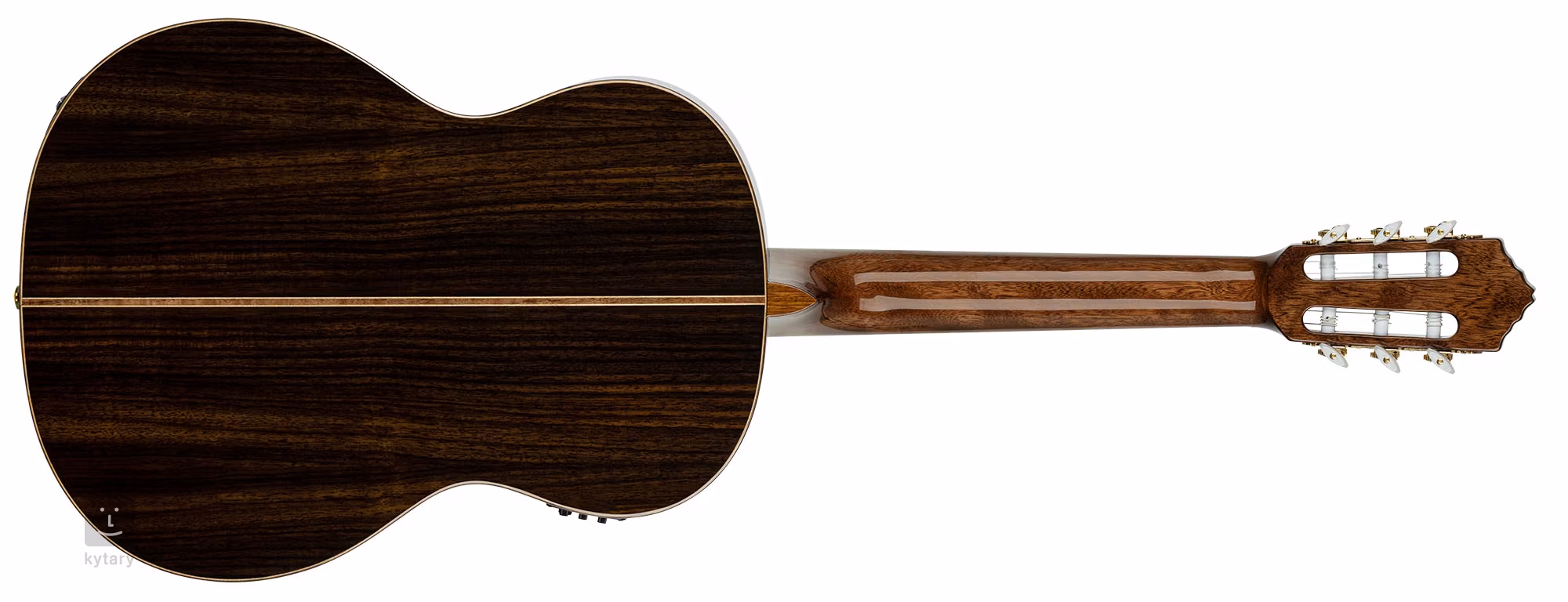 Struny jsou uchyceny v ladících mechanikách značky Der Jung ve zlatém provedení s bílými kolíčky a palisandrové kobylce. Pěkné zpracování podtrhuje obvodová lemovka těla z javoru a ořechu a dřevěná vykládaná rozeta.