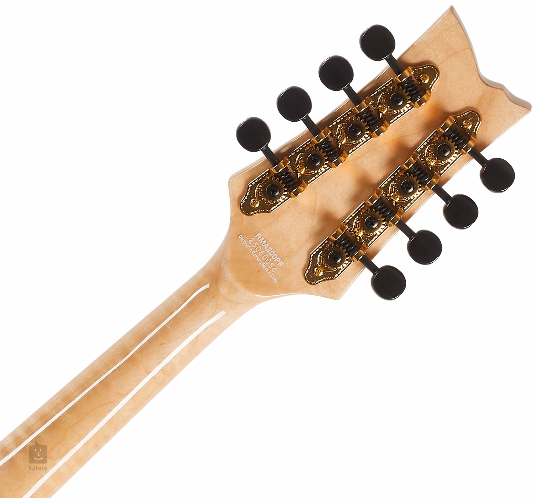 Struny jsou přes nultý pražec z kosti uchyceny ve firemních mechanikách ve zlatém provedení s černými kolíčky a kobylce a struníku. Pěkné zpracování podtrhuje obvodová lemovka z imitace slonoviny a dekorativní inlay na dvanáctém pražci.
