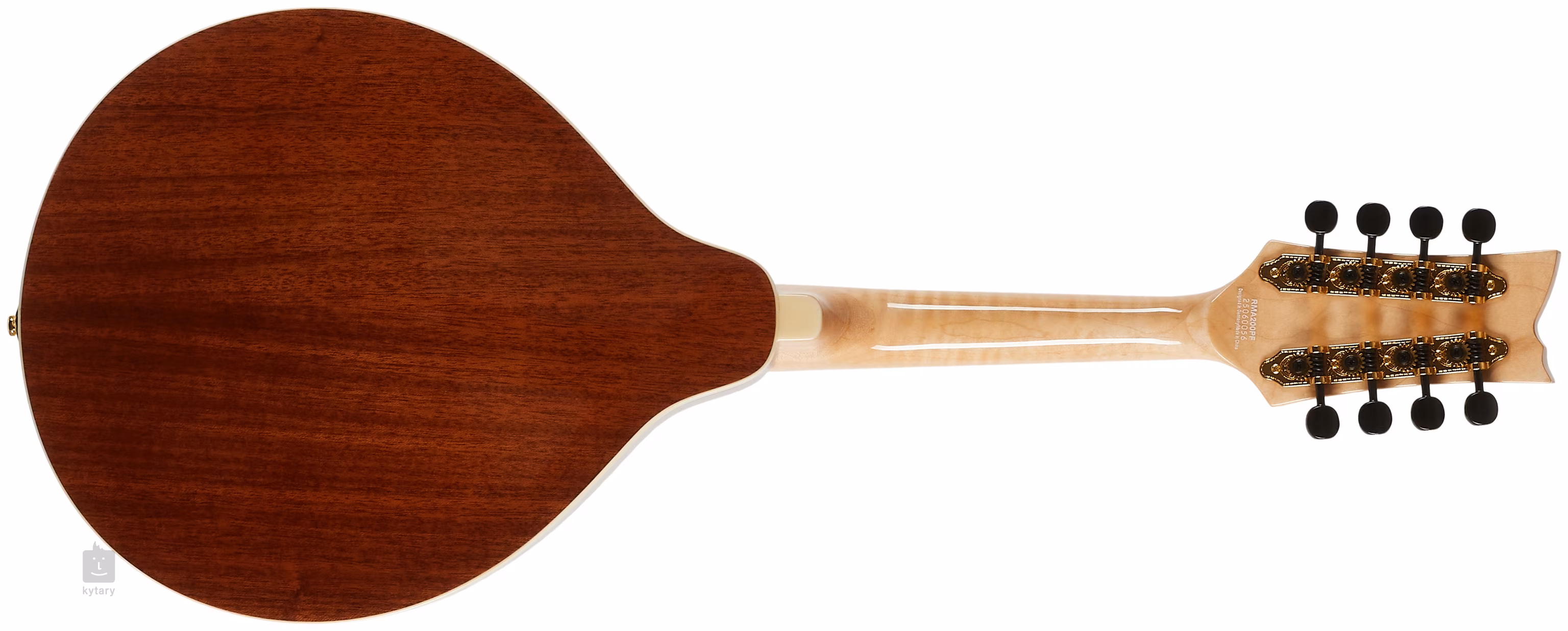 Třeba celomasivní A mandolínu RMA200PF z řady Americana Series. Přední desku nástroje z masivu fládrovaného javoru zdobí lesklá barevná úprava Transparent Purple Fade. Luby a zadní deska jsou vyrobeny z masivu mahagonu. Pěknou kresbu nabízí i krk a hmatník zhotovené z fládrovaného javoru.