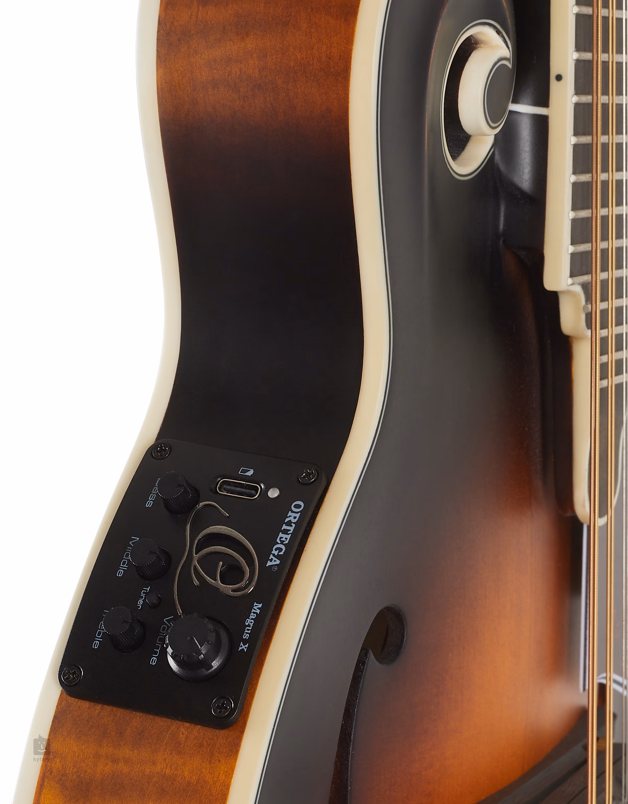 O ozvučení mandolíny se stará podkobylkový piezo snímač a preamp S1T s ovladači Volume, Tone a zabudovanou ladičkou.