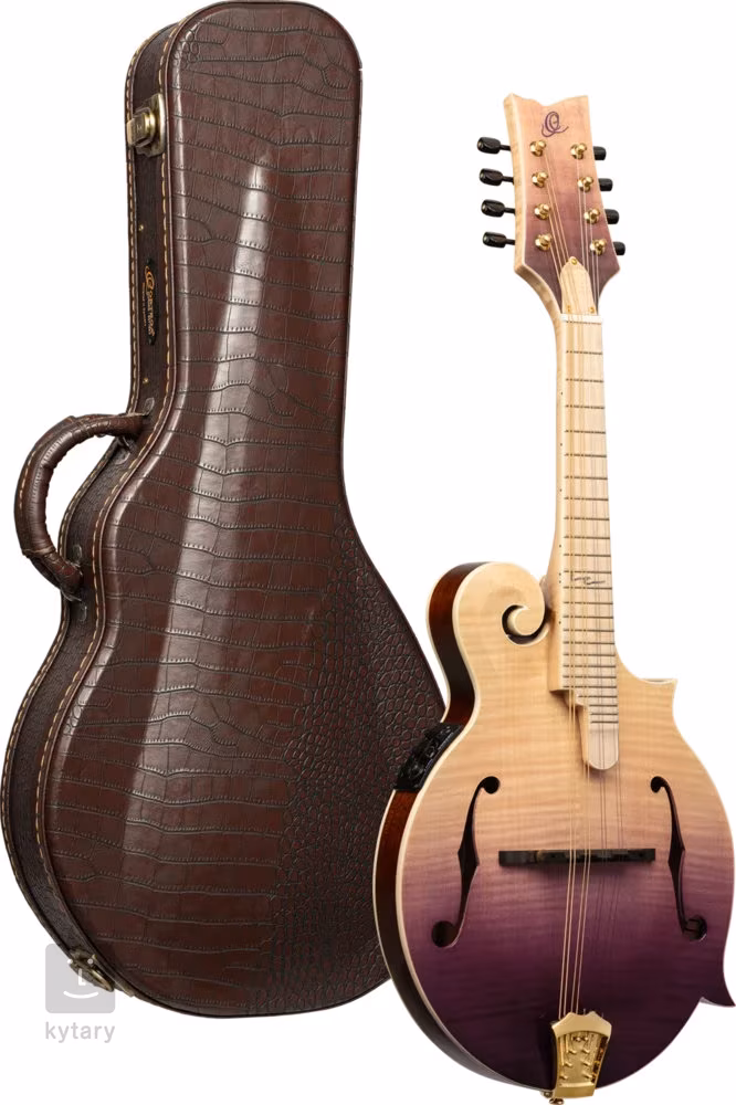 Třeba elektroakustickou celomasivní F mandolínu RMFE200PF z řady Americana Series. Přední desku nástroje z masivu fládrovaného javoru zdobí lesklá barevná úprava Transparent Purple Fade. Luby a zadní deska jsou vyrobeny z masivu mahagonu. Pěknou kresbu nabízí i krk a hmatník zhotovené z fládrovaného javoru.