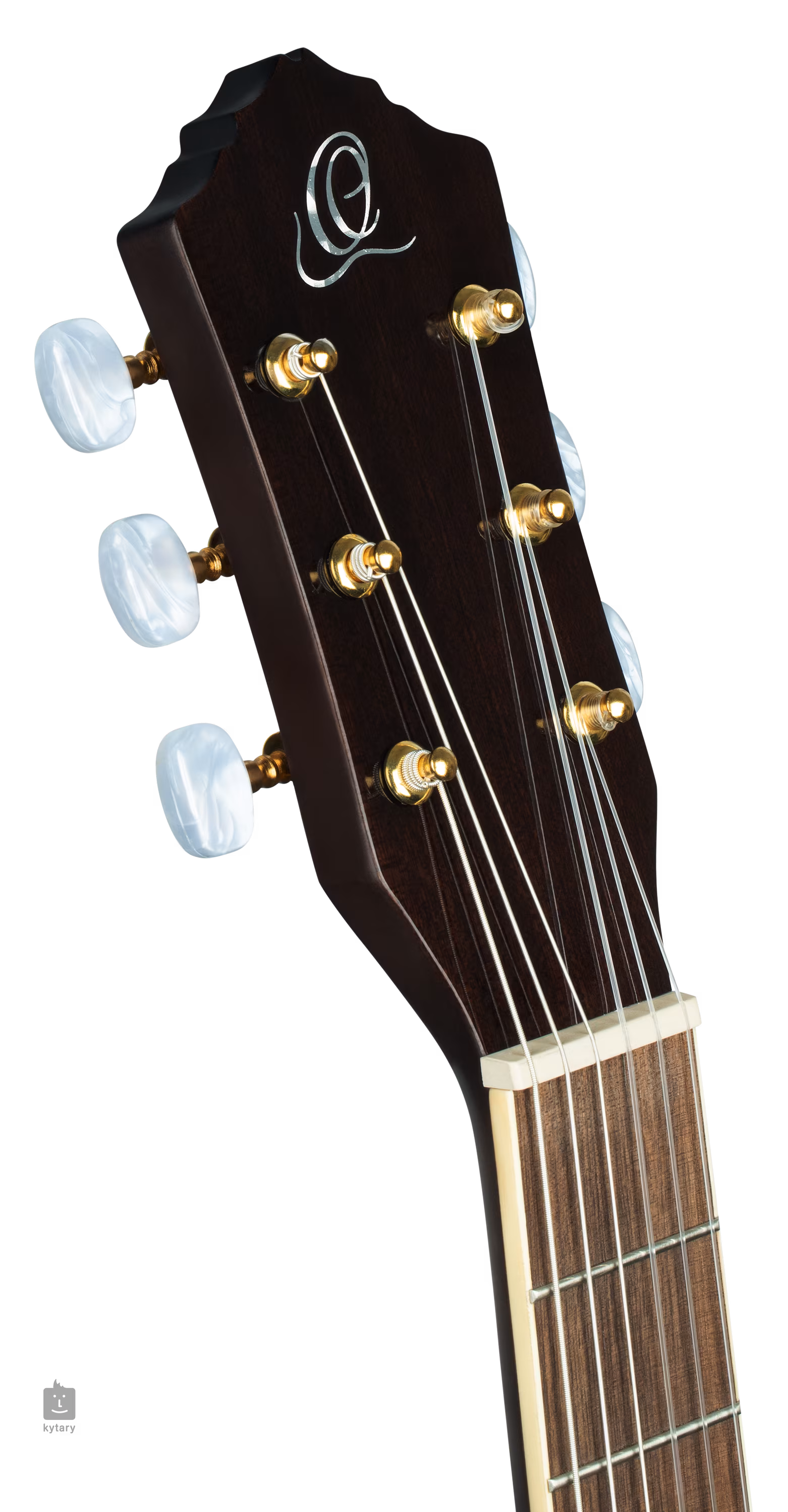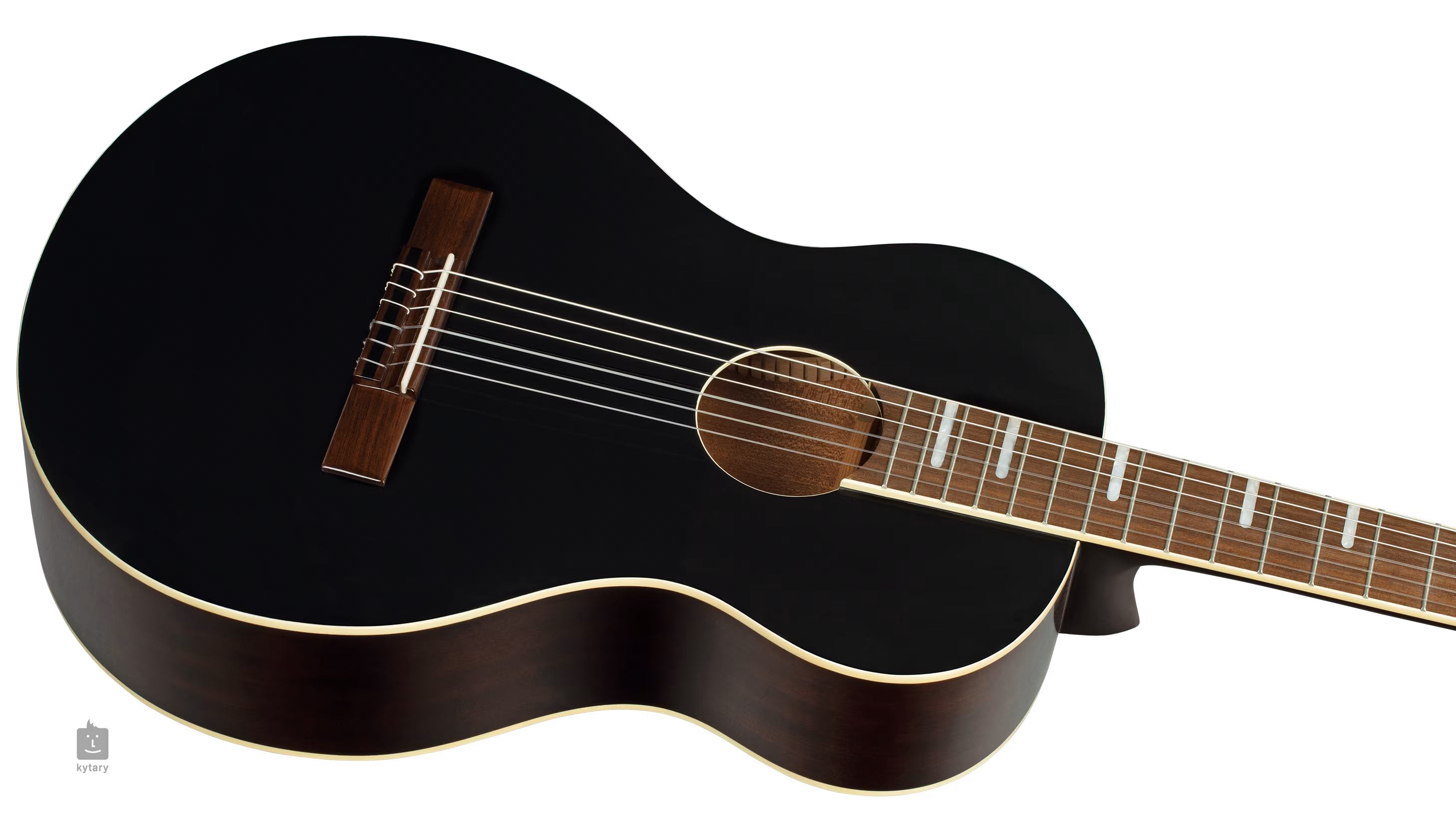 Struny jsou přes nultý plastový pražec uchyceny v otevřených ladících mechanikách ve zlatém provedení a ořechové kobylce. Stylové provedení podtrhuje barevná úprava přední desky, obvodová lemovka těla a hmatníku z imitace slonoviny, perleťové polohové značky na hmatníku a logo hlavici nástroje.