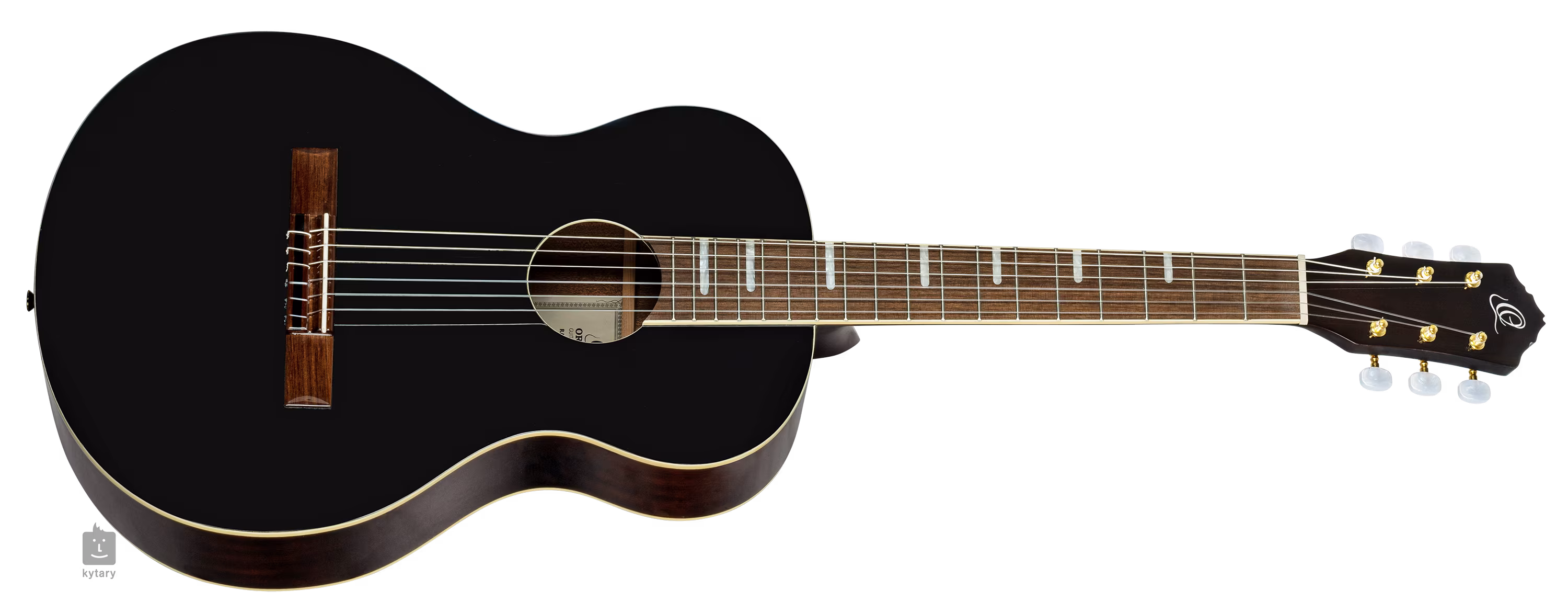 Ortega RRA-BKT je klasická kytara s kompaktním tělem typu Parlor a o něco kratší menzurou. Přední deska nástroje je zhotovena z laminovaného smrku, zadní deska a luby jsou vyrobeny z laminovaného mahagonu. Ke krku ze dřeva nato, často označovaného jako “eastern mahogany”, je přilepen ořechový hmatník osazený osmnácti pražci.