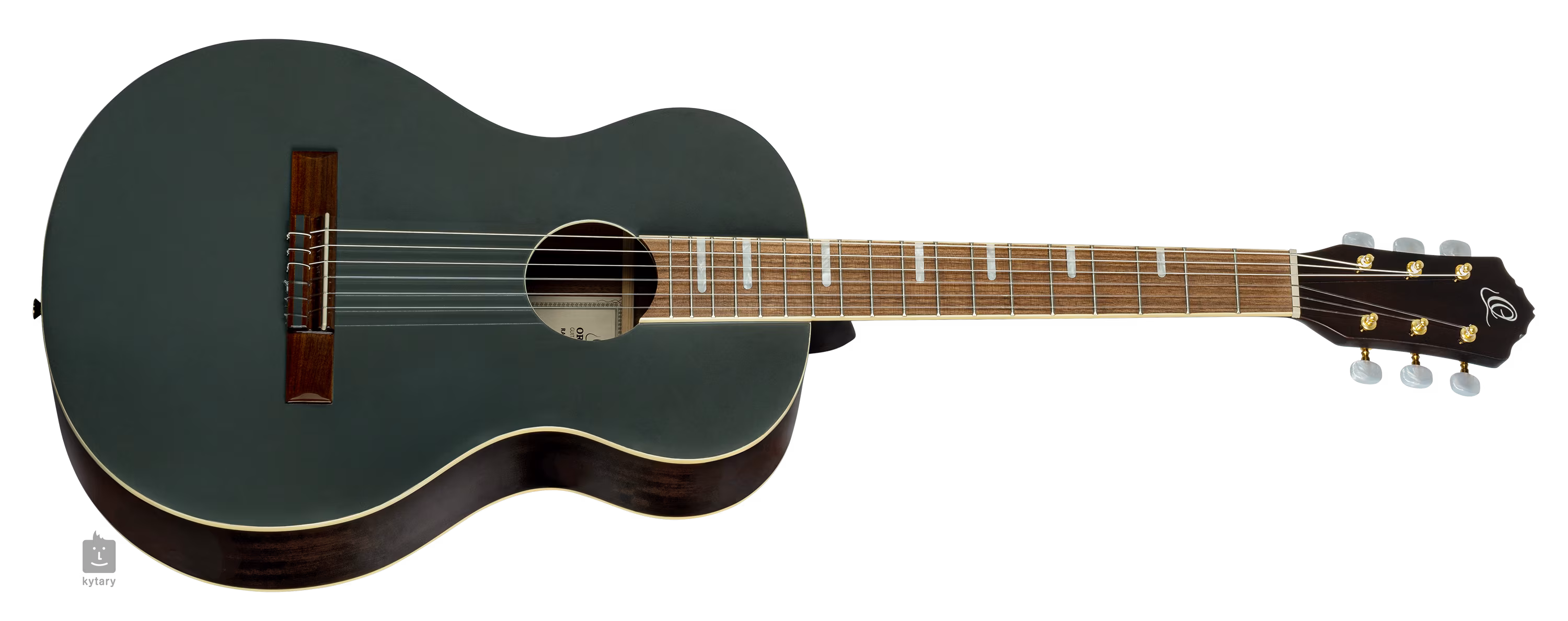 Ortega RRA-PLT je klasická kytara s kompaktním tělem typu Parlor a o něco kratší menzurou. Přední deska nástroje je zhotovena z laminovaného smrku, zadní deska a luby jsou vyrobeny z laminovaného mahagonu. Ke krku ze dřeva nato, často označovaného jako “eastern mahogany”, je přilepen ořechový hmatník osazený osmnácti pražci.