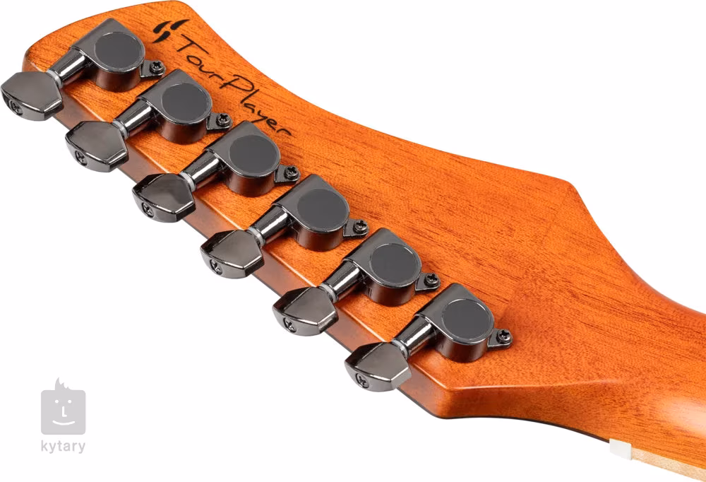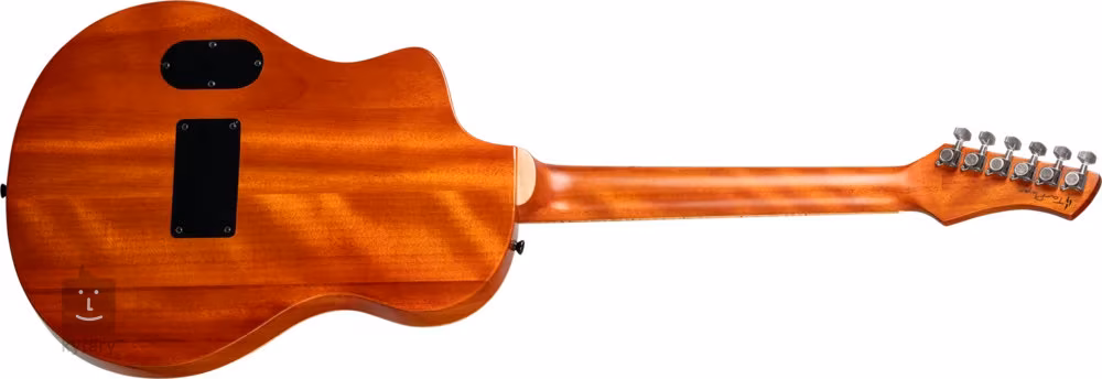 Struny jsou přes nultý a sedlový pražec z kosti uchyceny v kobylce z fíkovníku a v 6-in-line die-cast mechanikách, které si spíše spojíte s designem elektrických kytar. Pěkné zpracování podtrhuje opěrka ramene a obvodová lemovka z fládrovaného javoru.