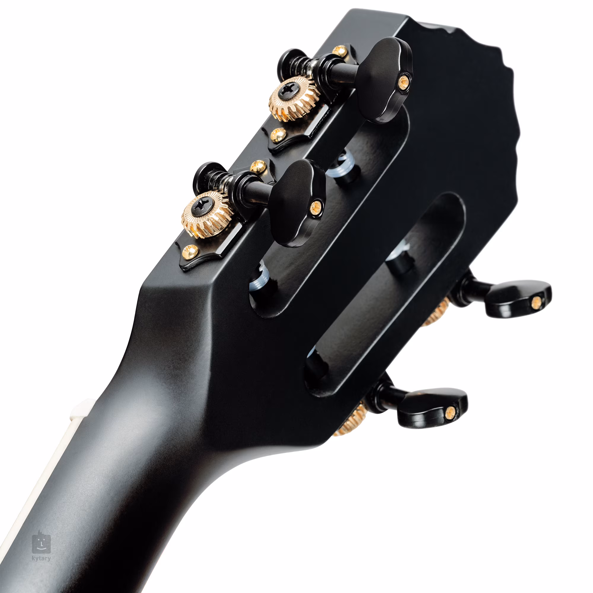 Tělo tenorového ukulele Ortega RTPS Tenor SBK je zhotoveno z masivu komorovaného okoumé a smrkového topu. K mahagonovému krku je přilepen hmatník ze dřeva purpleheart osazený jednadvaceti pražci. Dohmat na vyšších polohách hmatníku usnadňuje spodní výřez těla.