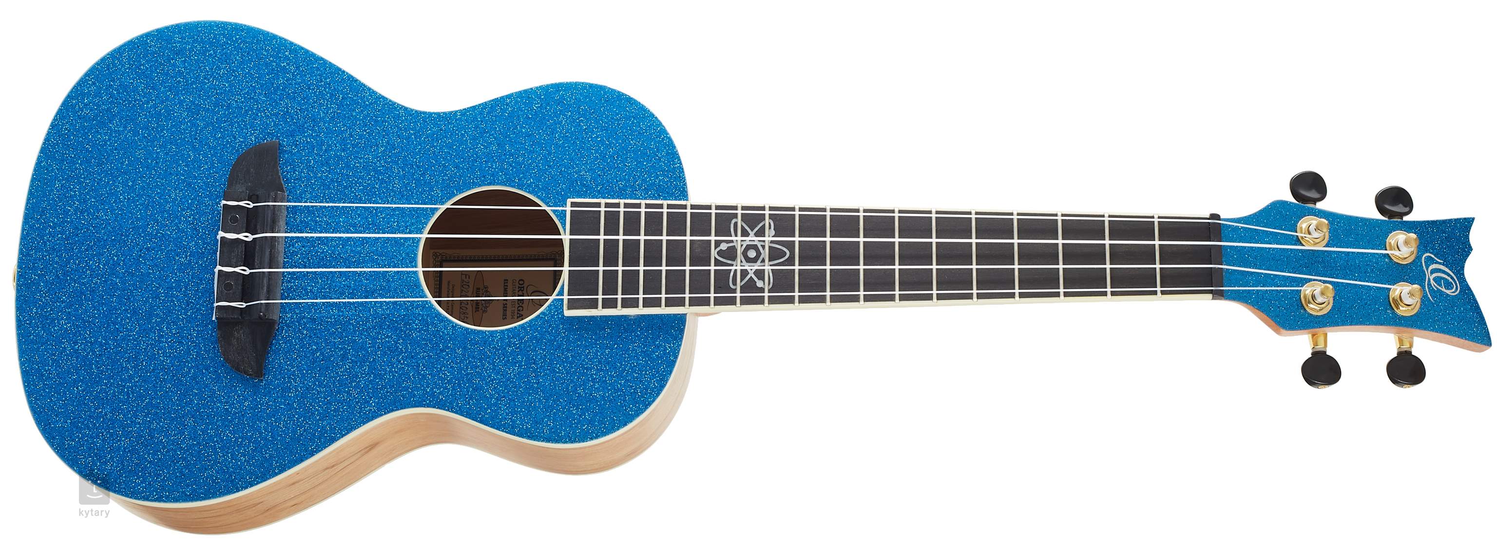 Akustické ukulele Ortega z řady Element Series zdobí finiš přední desky v podobě červené, modré, černé nebo zelené lesklé metalízy, barevně sladěná dýha hlavice a výrazný inlay hmatníku.