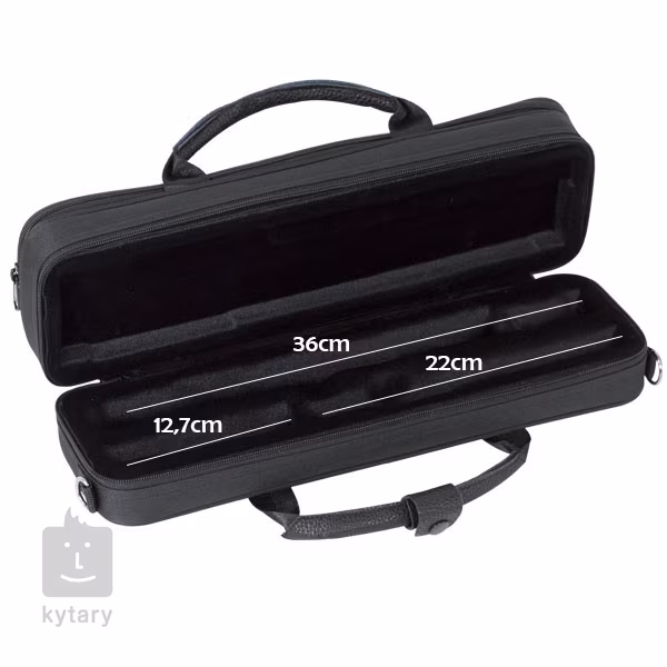 Pouzdro na příčnou flétnu zhotovené z plastifikovaného polyesteru. Nabízí vnější kapsu na drobné příslušenství, vnitřní polstrování, tvarovaný vnitřní prostor (polyuretanová pěna a ABS), podšívku z veluru, madlo, popruh na rameno a zapínání na zip.