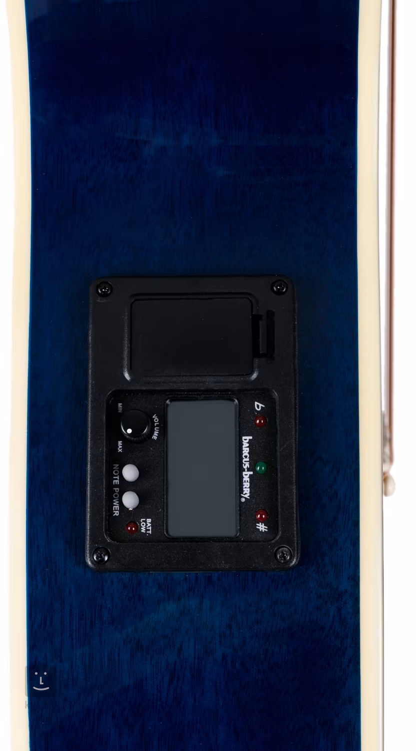 O sejmutí zvuku a jeho zesílení se stará podkobylkový piezo snímač a preamp v lubu kytary se zabudovanou ladičkou.