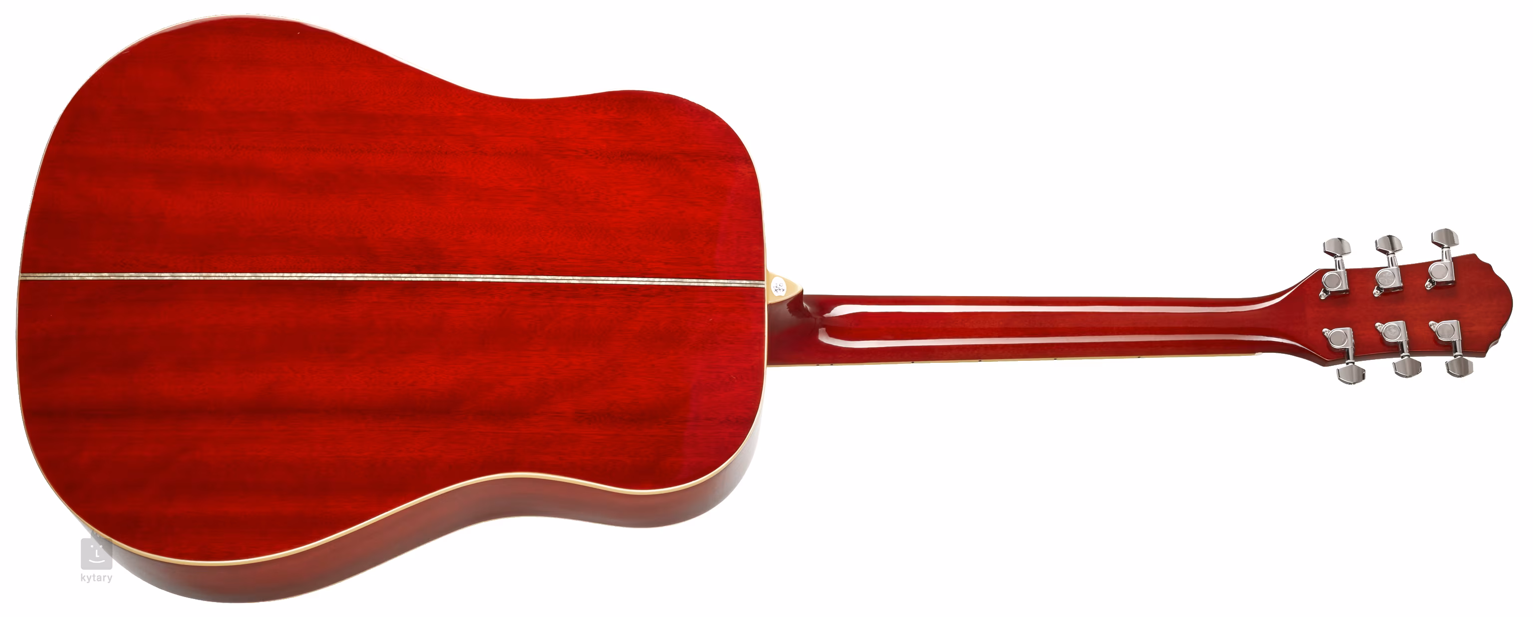 Struny jsou uchyceny v chromovaných litých (Die-Cast) mechanikách. Pěkné zpracování podtrhuje obvodová lemovka doplněná výložkou z imitace perleti, rozeta složená z prstenců z imitace perleti a černobílých linek a praktický pickguard z imitace želvoviny.