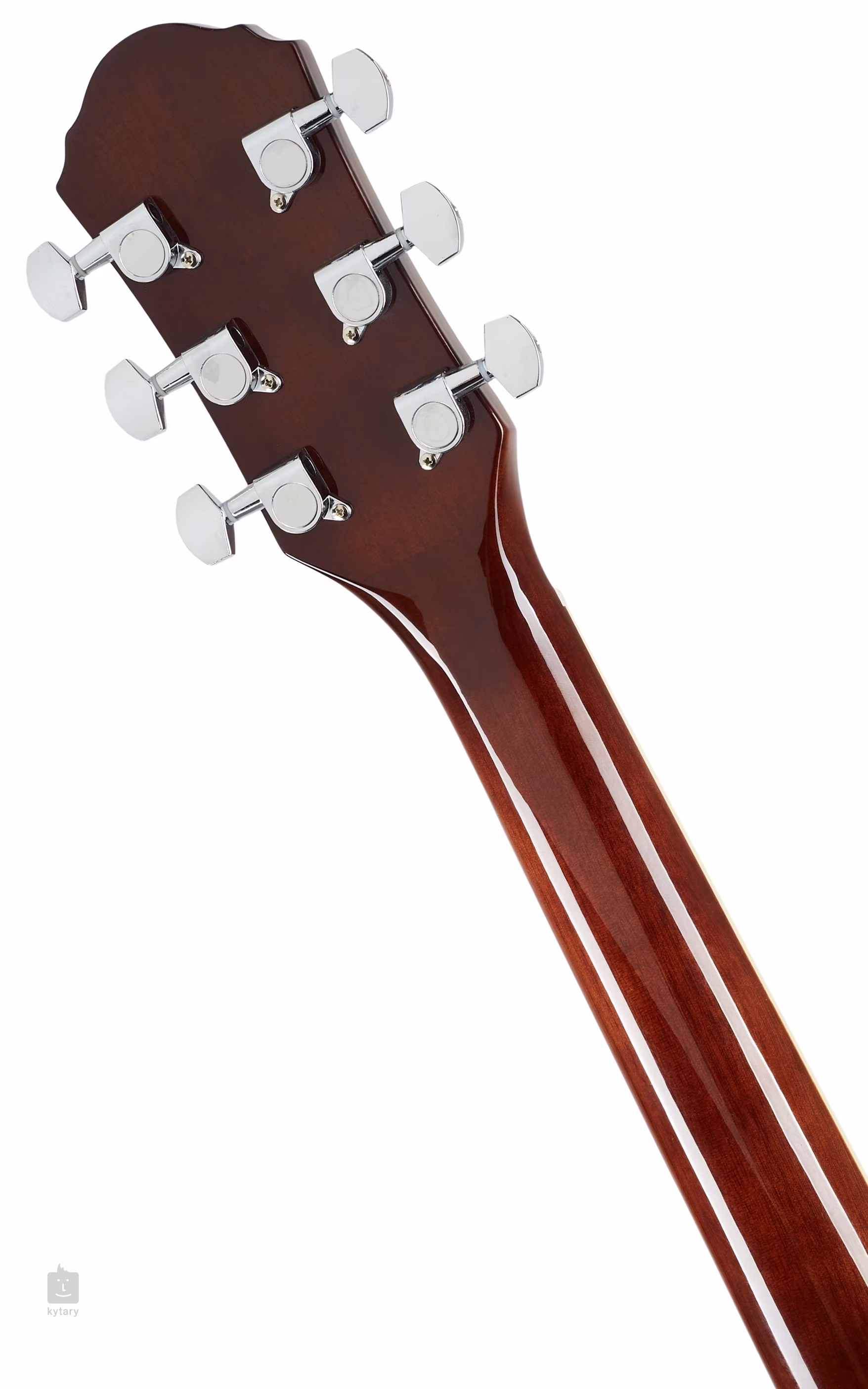 Struny jsou uchyceny v chromovaných litých (Die-Cast) mechanikách. Pěkné zpracování podtrhuje obvodová lemovka doplněná výložkou z imitace perleti, rozeta složená z prstenců z imitace perleti a černobílých linek a praktický pickguard z imitace želvoviny.