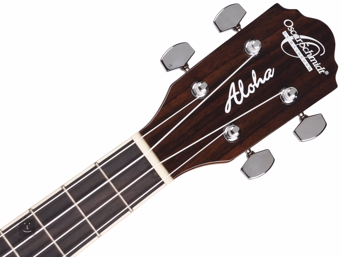 Krk je mahagonový s palisandrovým hmatníkem, na pohled zaujme lesklý finiš, ozdobná lemovka a rozeta z ušně. Samozřejmostí jsou chromované Die-Cast ladící mechaniky. Továrně se na ukulele natahují výborné struny značky Aquila.