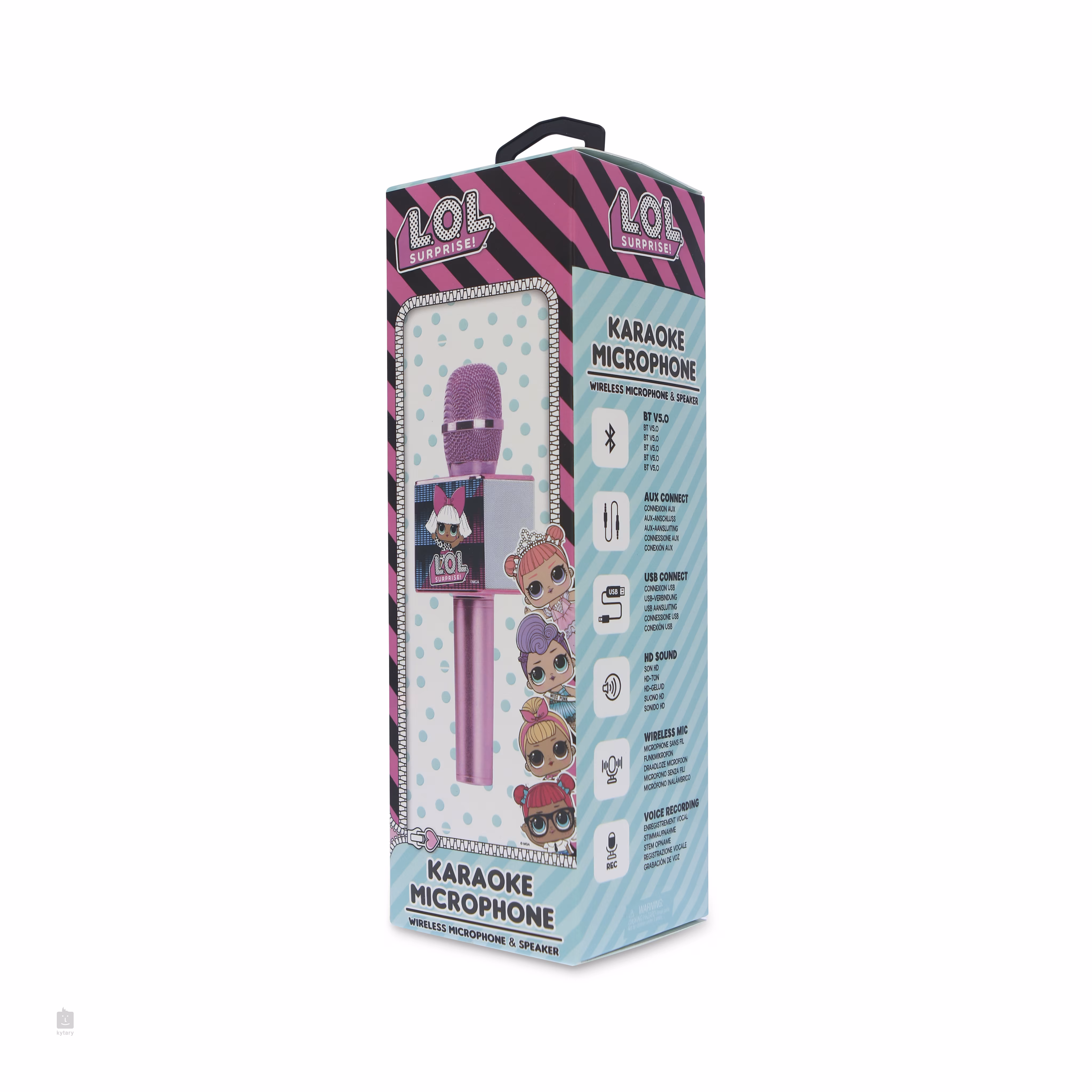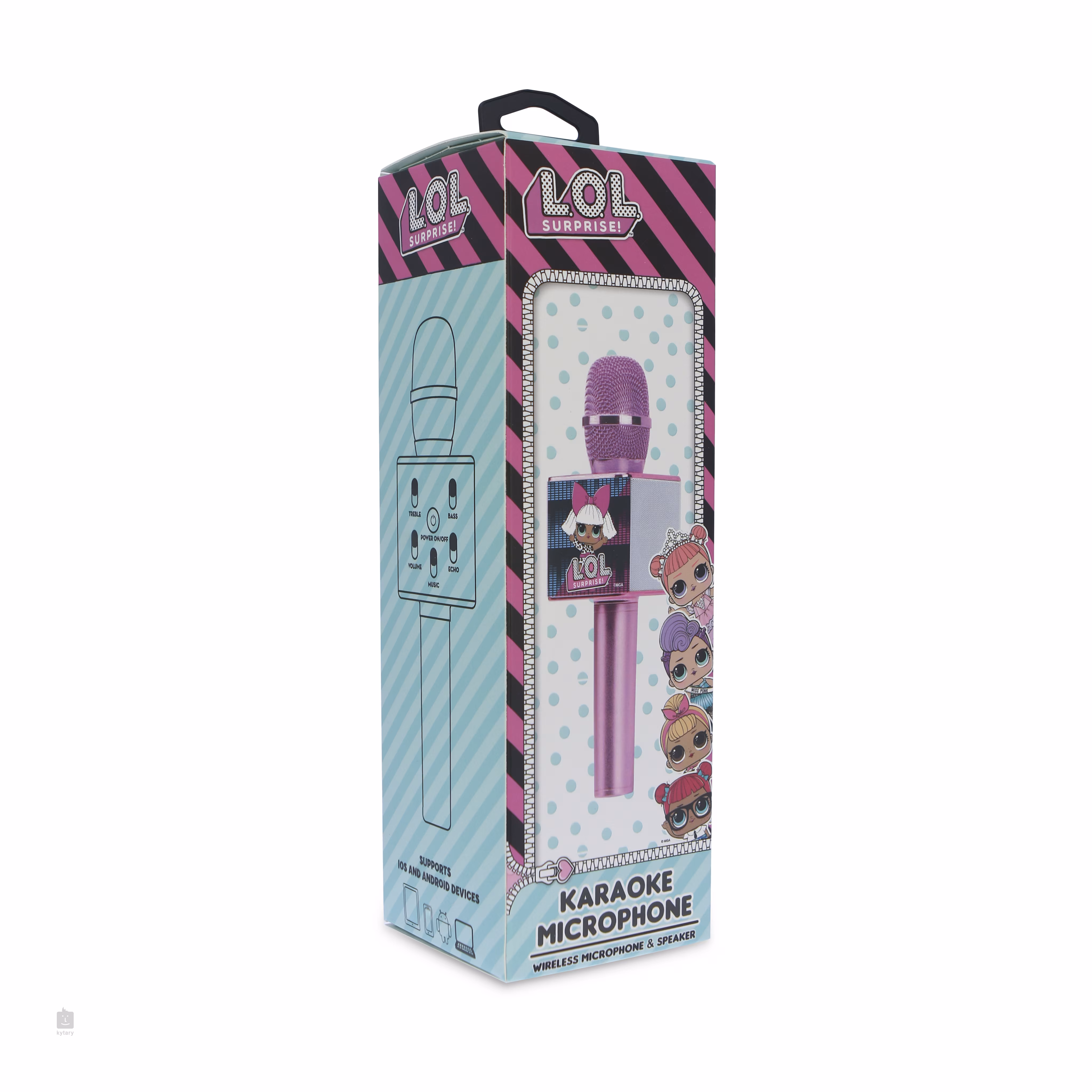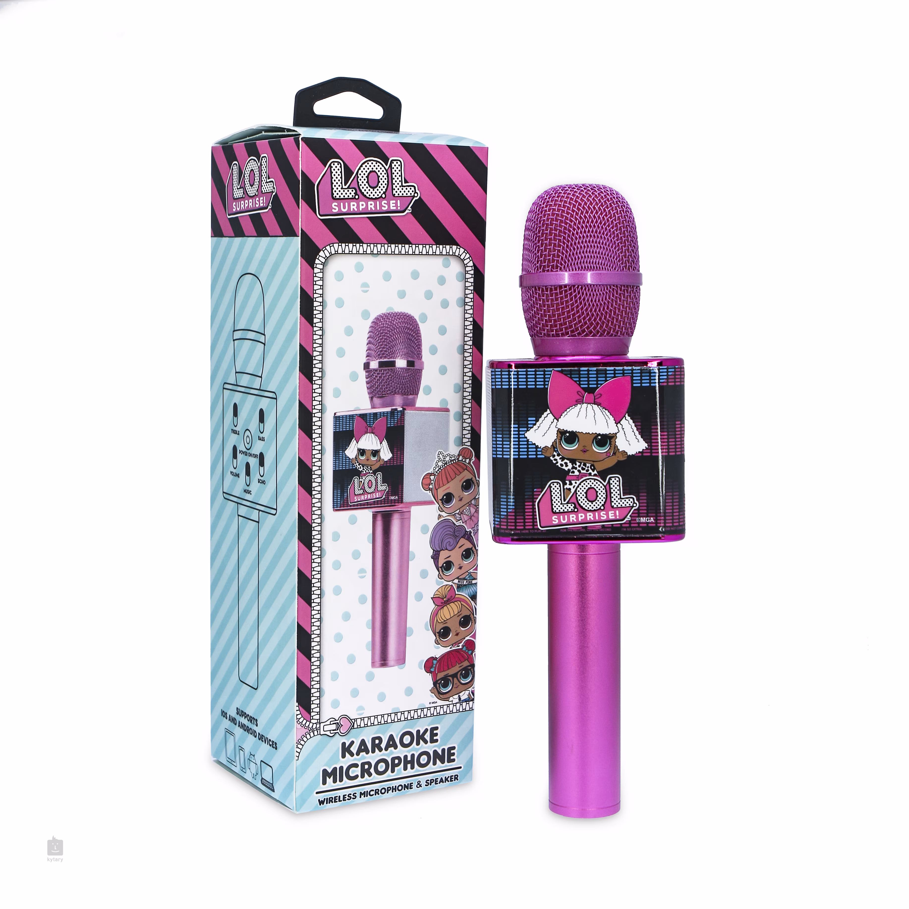Mikrofon v designu L.O.L. Surprise disponuje kapslí s kardioidní směrovou charakteristikou a přehledným ovládacím panele pro nastavení výšek, basů, hlasitosti nebo Echo efektu. Bezdrátový reproduktor se dvěma drivery vám nabídne maximální výkon až 6 W. Součástí balení je nabíjecí USB kabel.